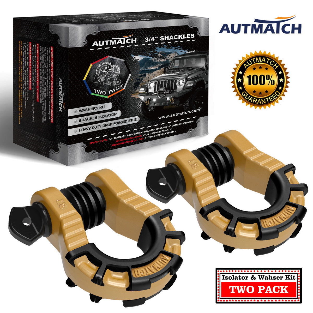 AUTMATCH Shackles 3/4" D Ring Shackle (2 Pack) 68,000Ibs Break Strength with Shackle Isolator & Washers Kit Gold & Black