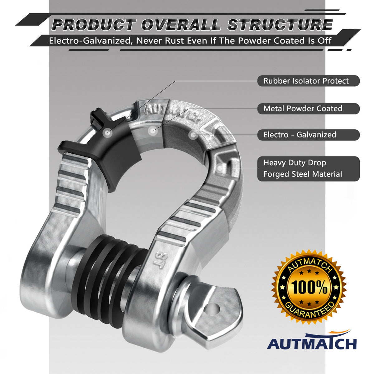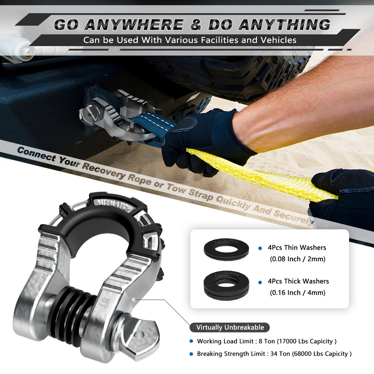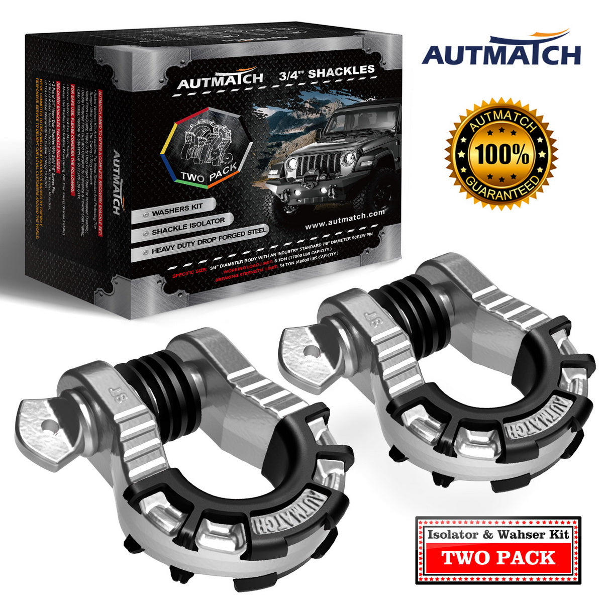 AUTMATCH Shackles 3/4" D Ring Shackle (2 Pack) 68,000Ibs Break Strength with Shackle Isolator & Washers Kit Silver