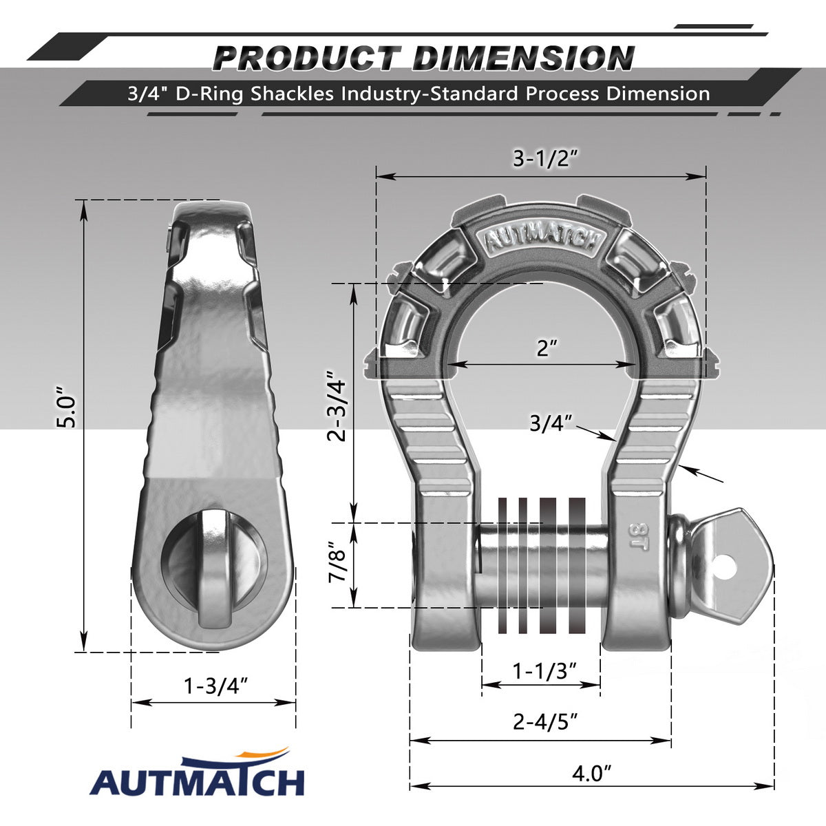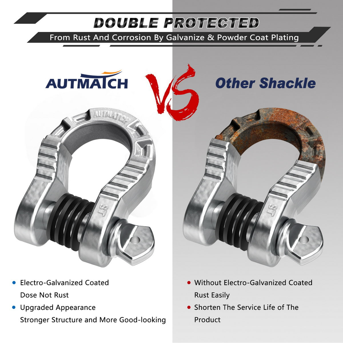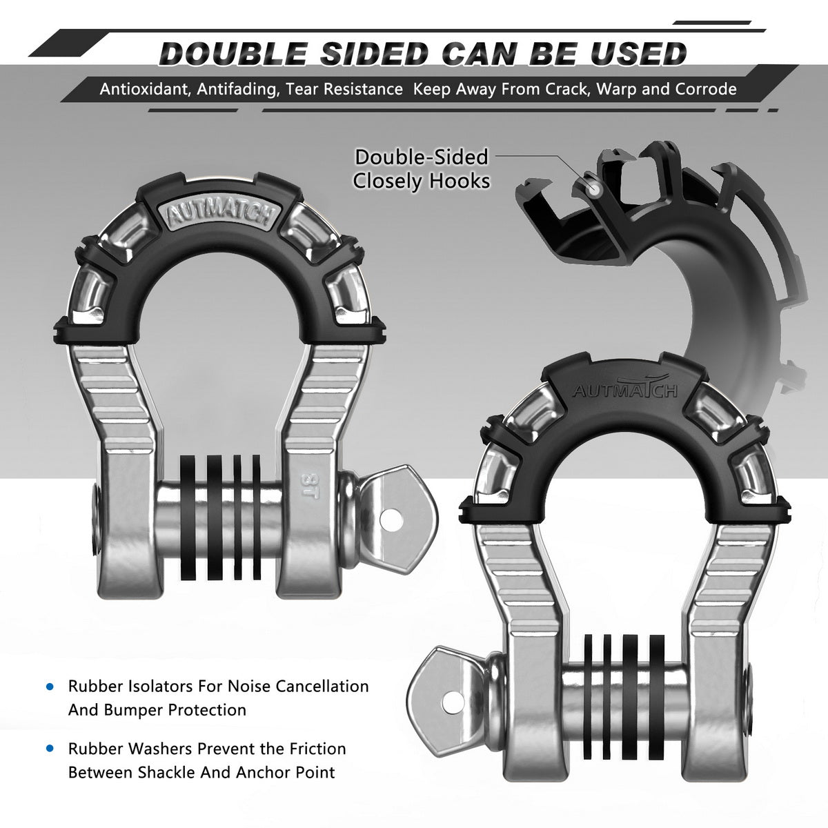 AUTMATCH Shackles 3/4" D Ring Shackle (2 Pack) 68,000Ibs Break Strength with Shackle Isolator & Washers Kit Silver