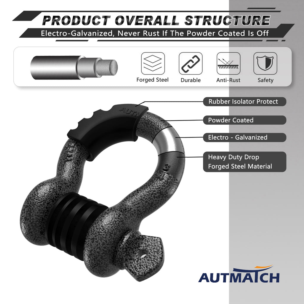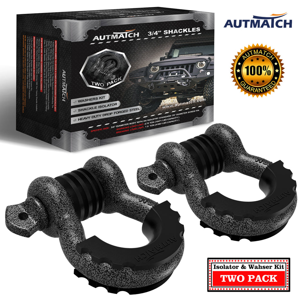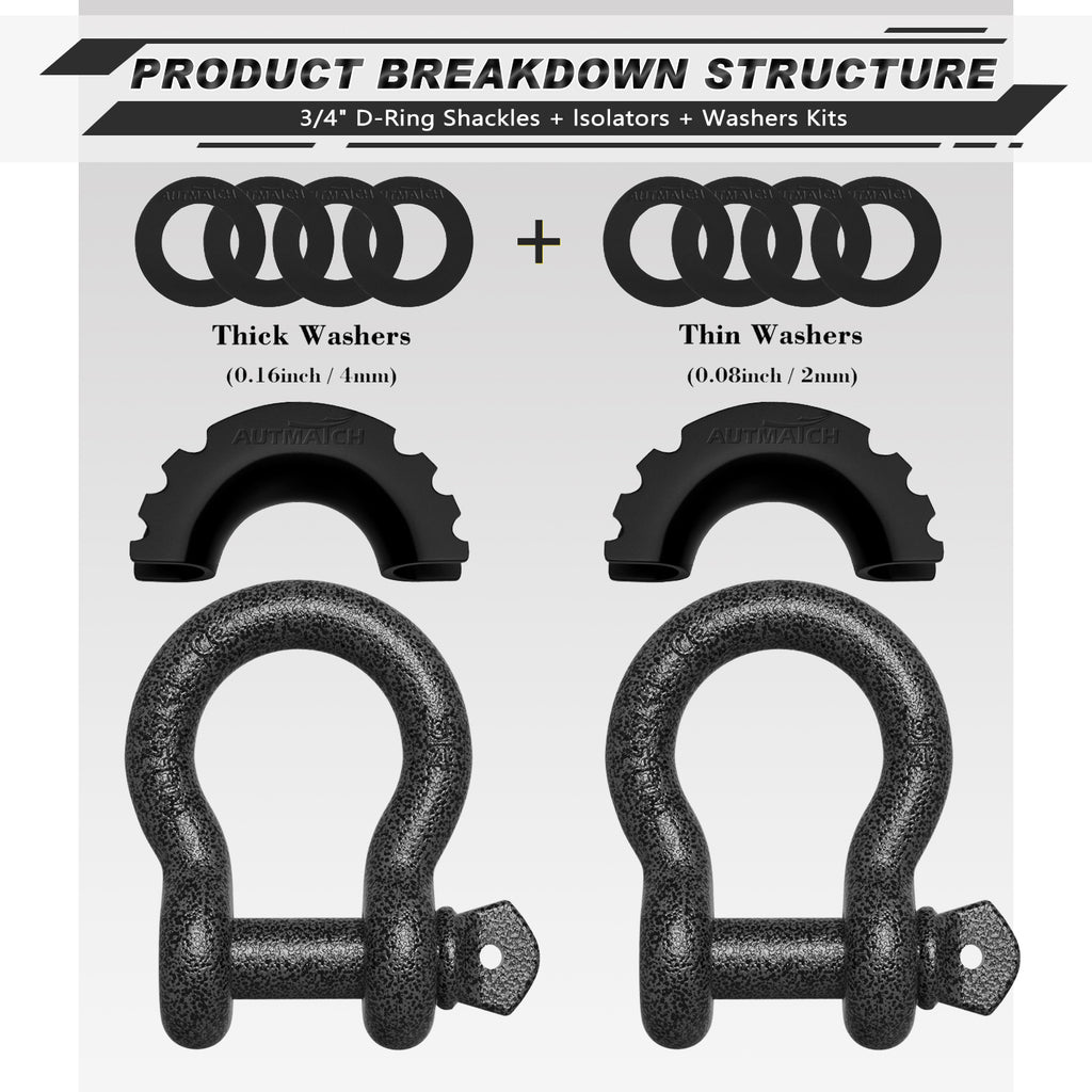 AUTMATCH 3/4" D Ring Shackle (2 Pack) 41,887Ib Break Strength with 7/8" Screw Pin and Isolator & Washer Kit Dark Grainstone