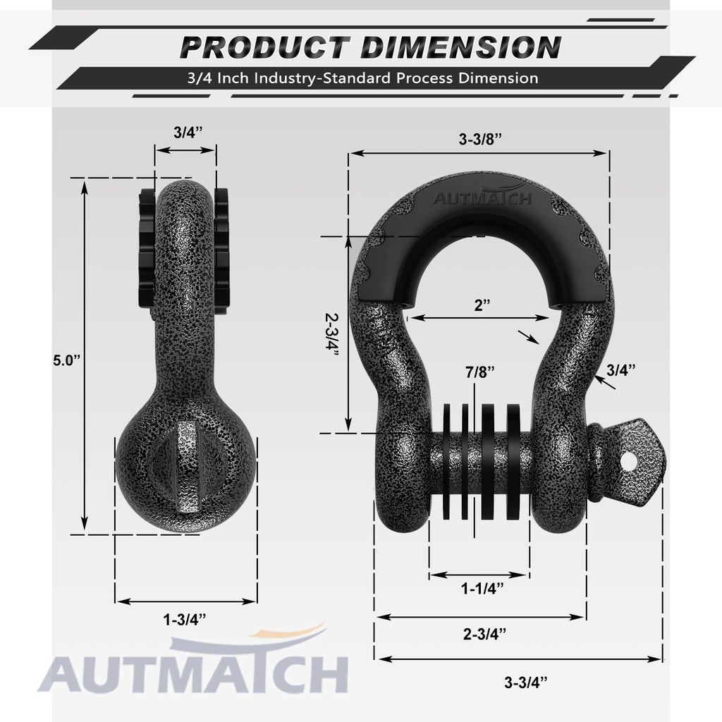 Super Quality: 3/4 Inches D Ring Shackle Was Made of Heavy Duty Drop Forged Steel and The Towing Capacity Up To 4.75 Tons (10,471 Pounds) For Superior Strength and An Industry-Standard 7/8 Inches Screw Pin To Keep It Stability