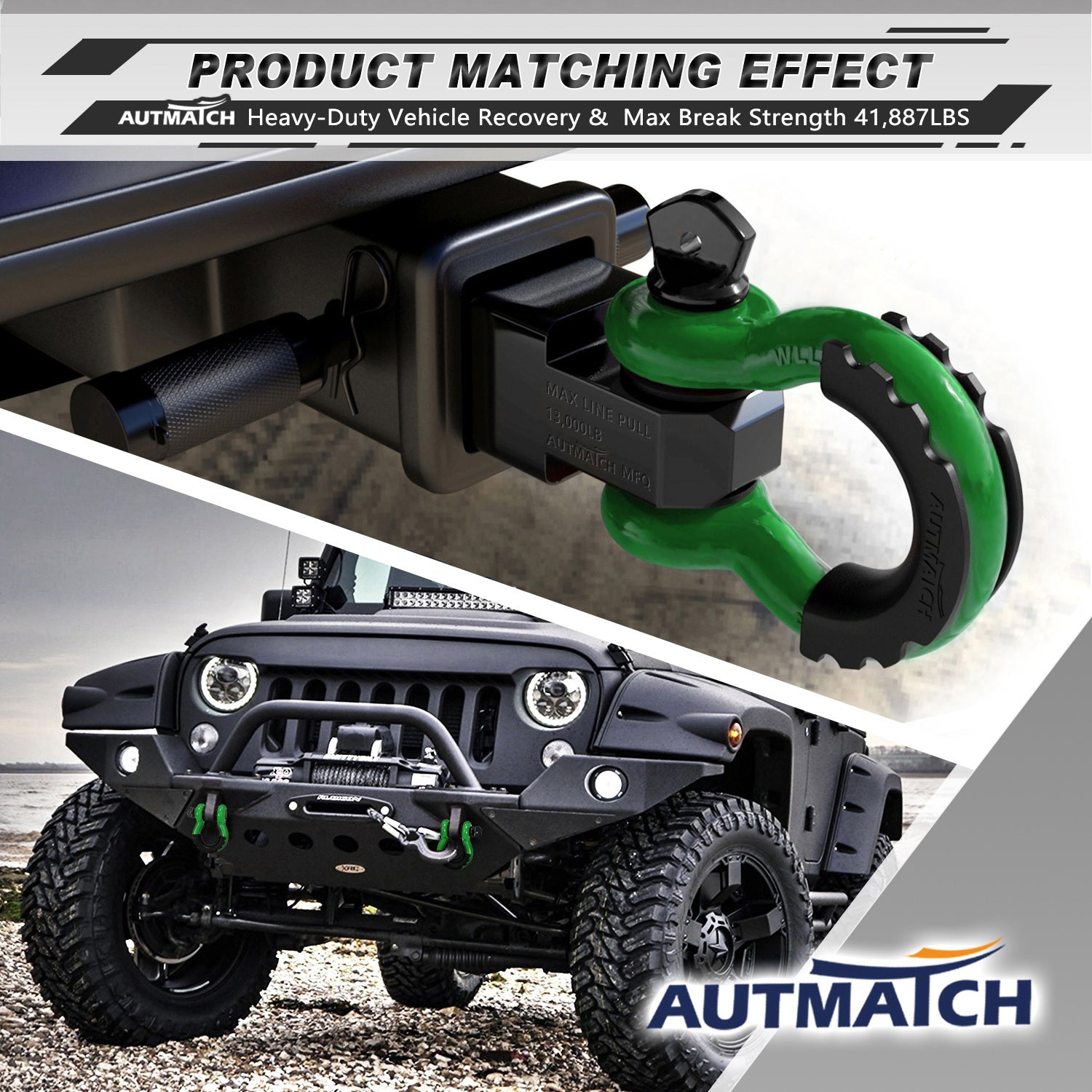 - Off-Road Versatility: Universal Design and Great For Jeeps, ATV, UTV, Trucks, Trailers, and Sport-Utility Vehicles and For Use With Recovery Tow Snatch Straps, Snatch Blocks, Tree Savers Etc