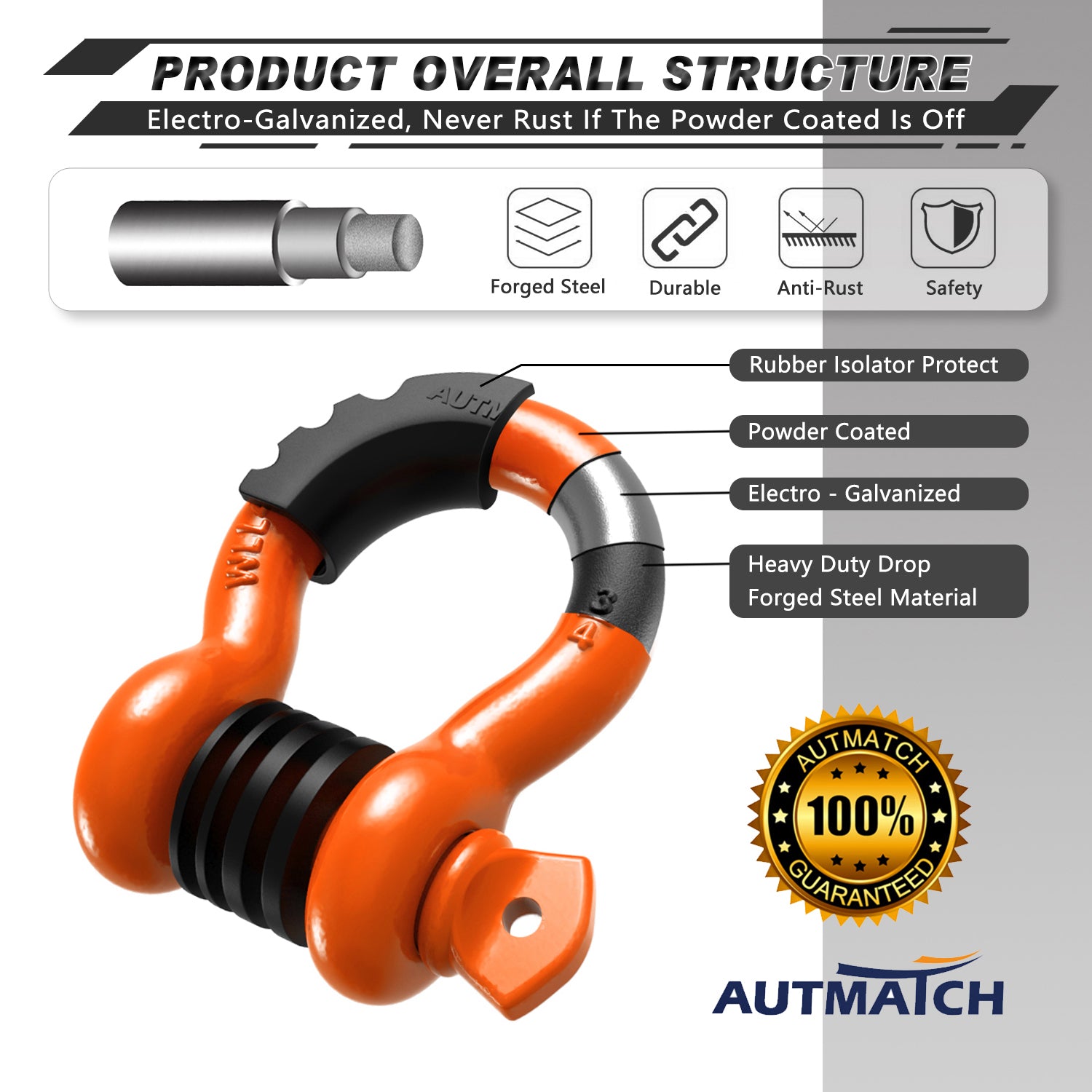 AUTMATCH 3/4" D Ring Shackle (2 Pack) 41,887Ib Break Strength with 7/8" Screw Pin and Isolator & Washer Kit Orange