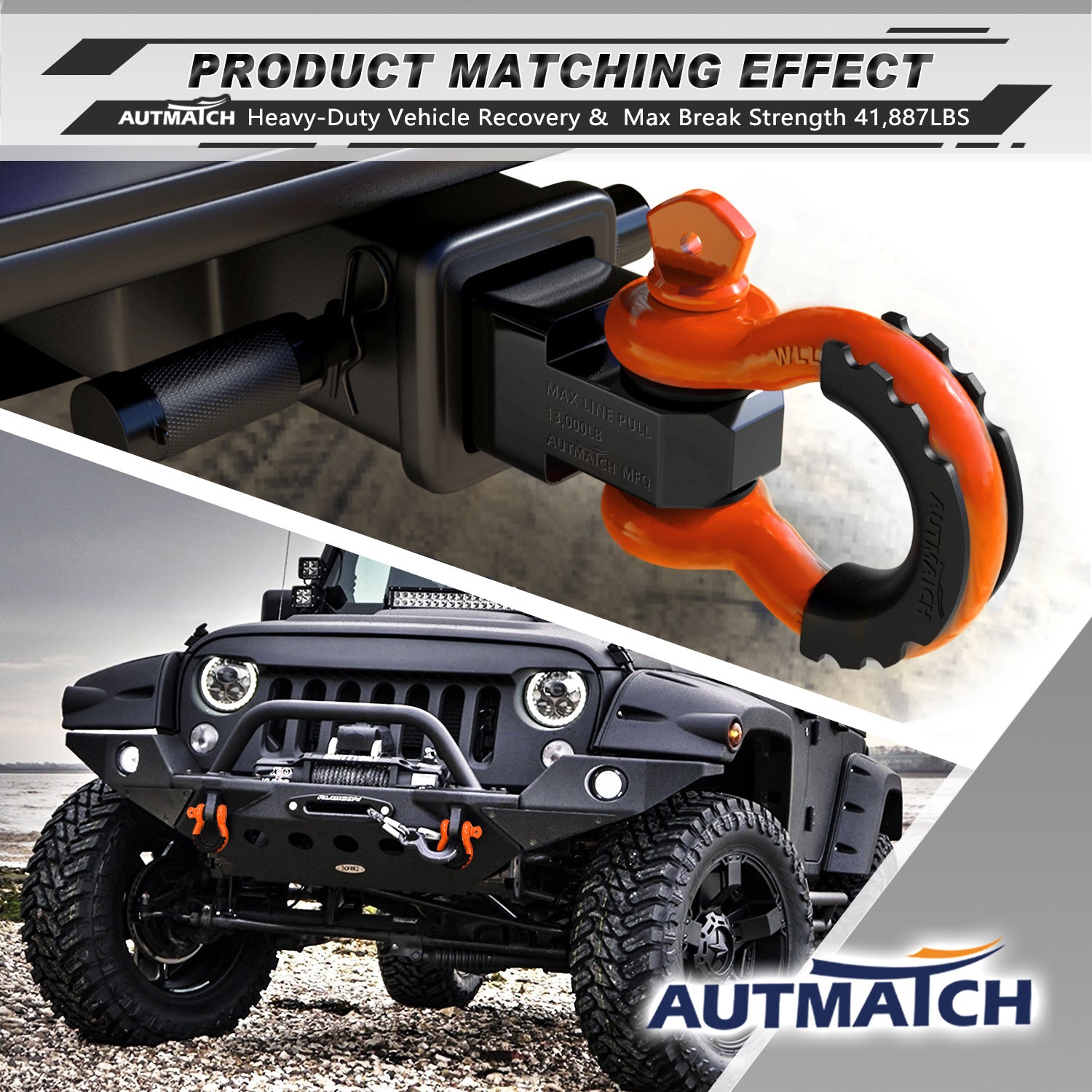 - Off-Road Versatility: Universal Design and Great For Jeeps, ATV, UTV, Trucks, Trailers, and Sport-Utility Vehicles and For Use With Recovery Tow Snatch Straps, Snatch Blocks, Tree Savers Etc