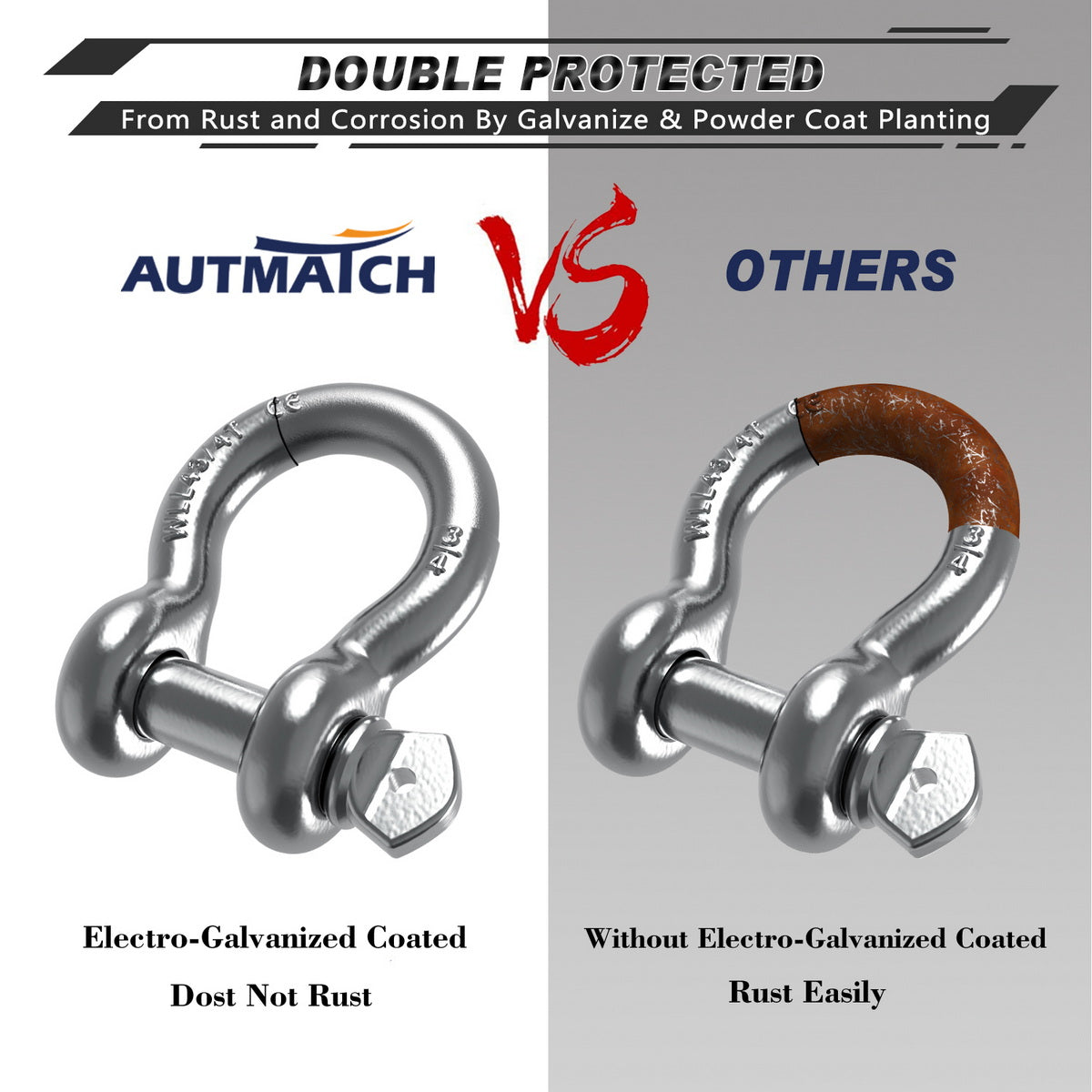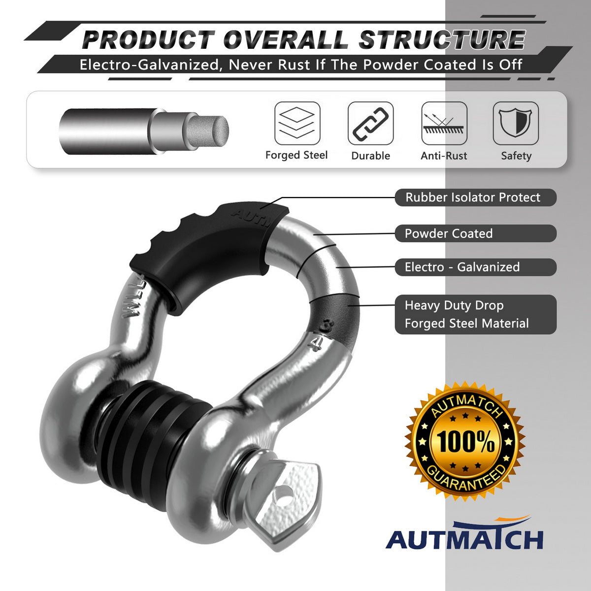 AUTMATCH 3/4" D Ring Shackle (2 Pack) 41,887Ib Break Strength with 7/8" Screw Pin and Isolator & Washer Kit Silver