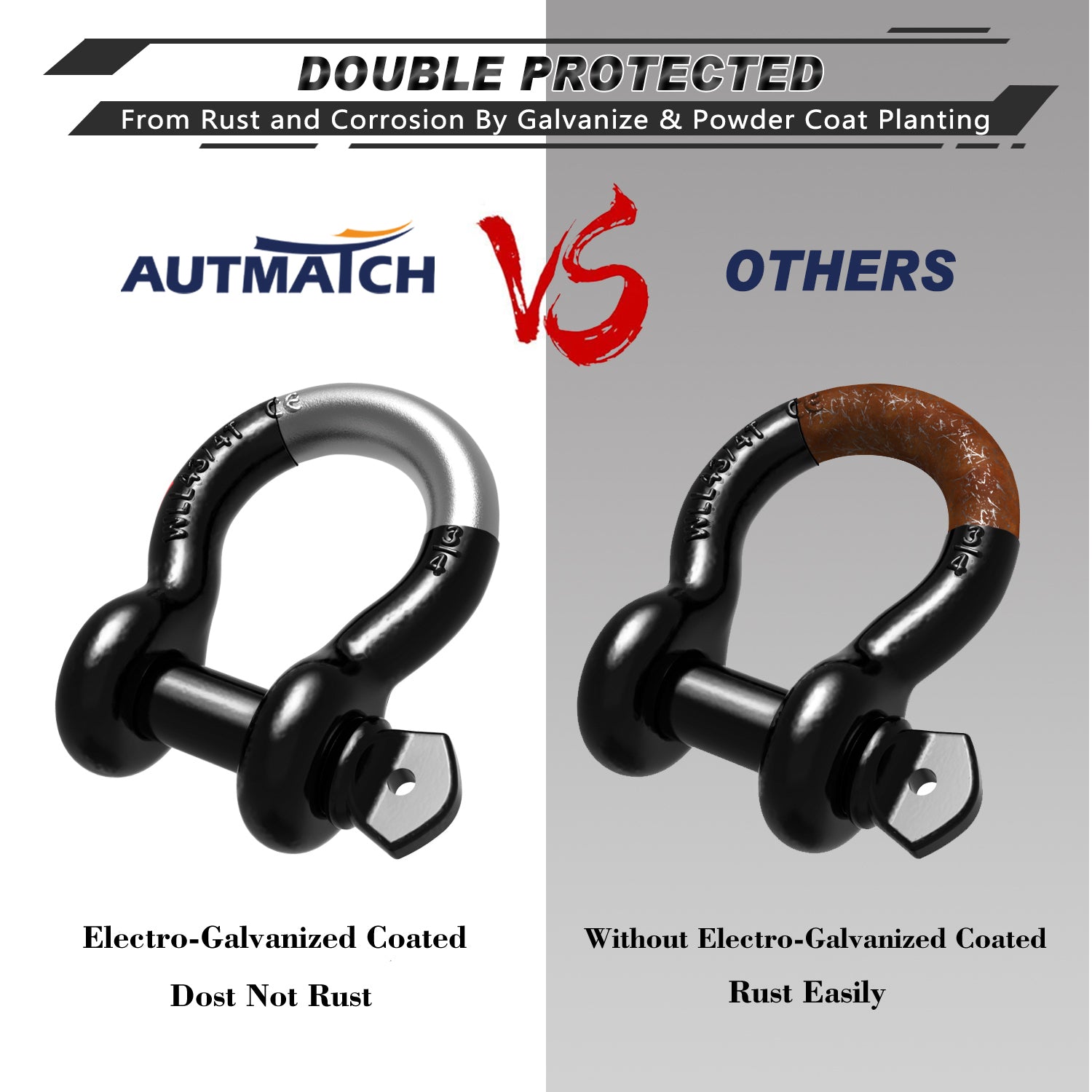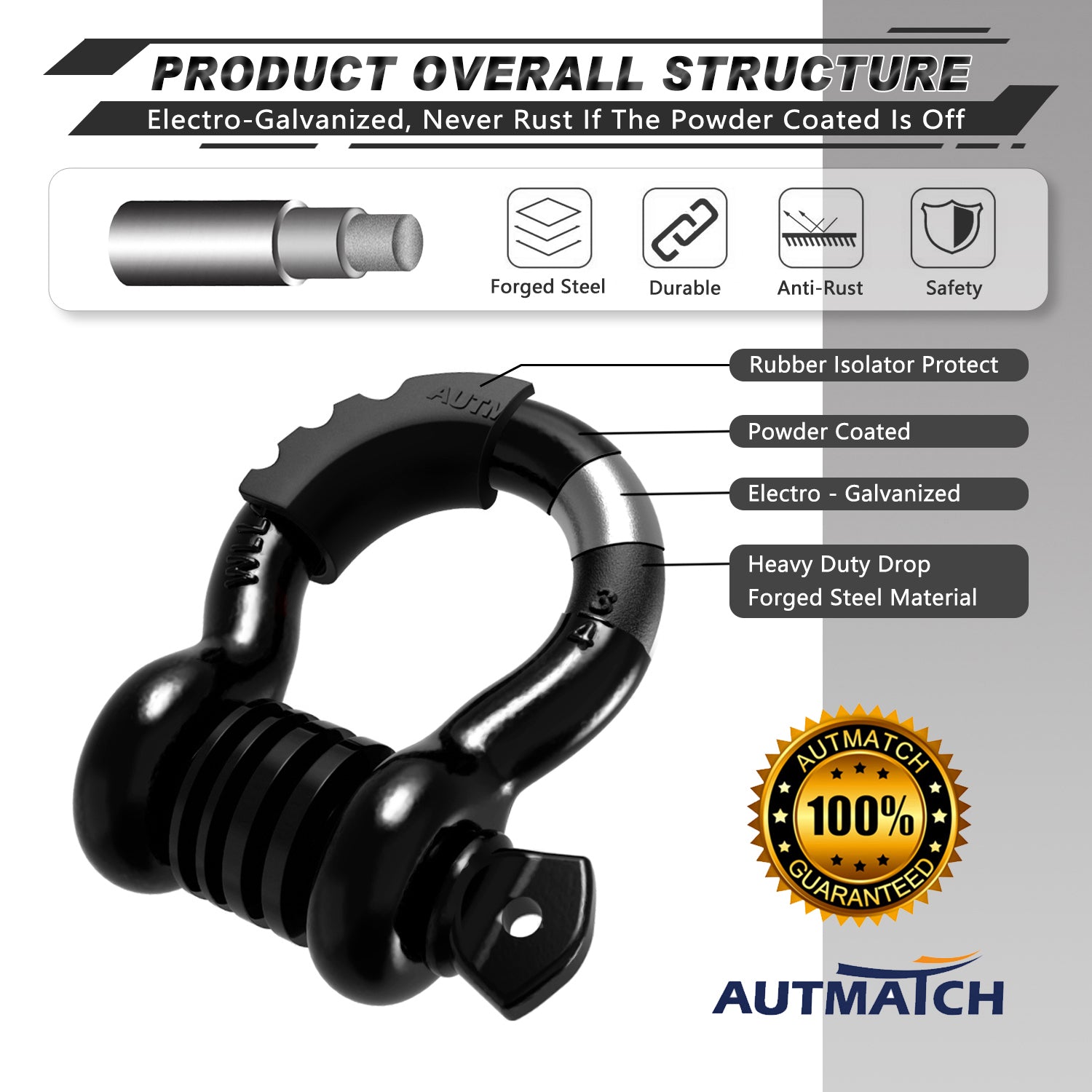 AUTMATCH 3/4" D Ring Shackle (2 Pack) 41,887Ib Break Strength with 7/8" Screw Pin and Isolator & Washer Kit Black