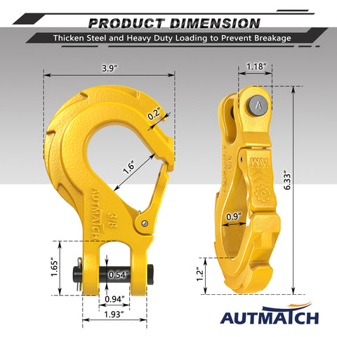 • Super Quality: The Winch Hook Was Made of Heavy-Duty Grand 70 Forged Heat-Treated Steel + Cast Alloy Steel of Safety Latch, Which Upgrade the Break Strength Up To 39600Lbs to Keep It More Safety & Stability