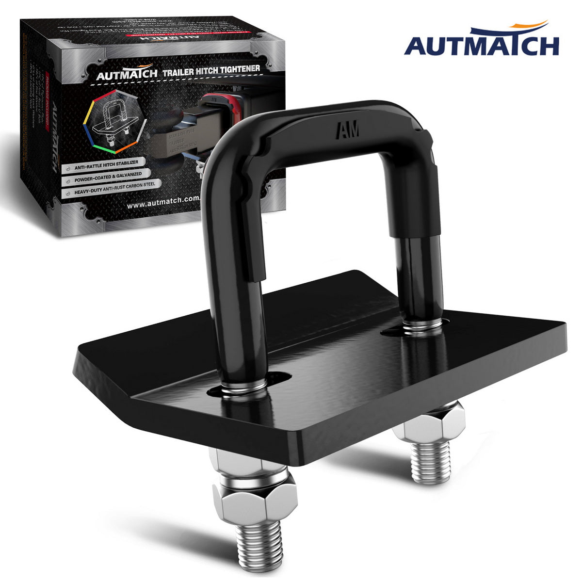 AUTMATCH Hitch Tightener Anti-Rattle Clamp Heavy Duty Steel Stabilizer for 1.25 and 2 inch Trailer Hitches Black