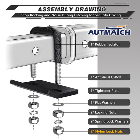 • Compatibility: Easily Installs with Class I, II, III or IV (1, 2, 3 or 4) Trailer Hitches and Suitable For 1.25 and 2 Inch Hitch Receivers, Help To Tightening It In Place and Secure.