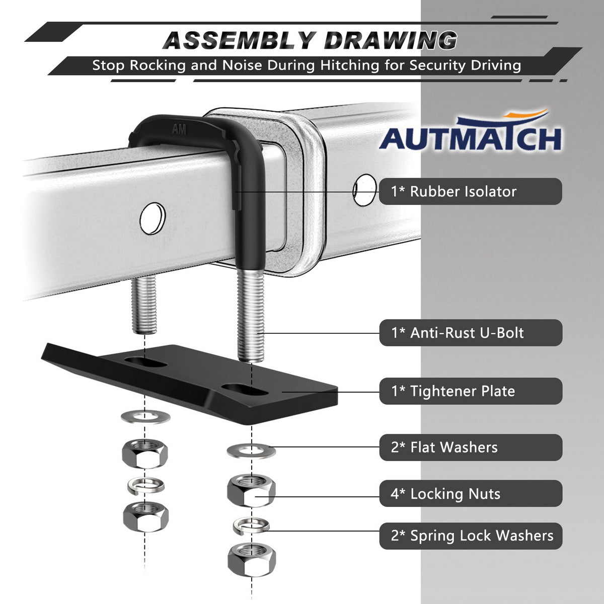 • Compatibility: Easily Installs with Class I, II, III or IV (1, 2, 3 or 4) Trailer Hitches and Suitable For 1.25 and 2 Inch Hitch Receivers, Help To Tightening It In Place and Secure.