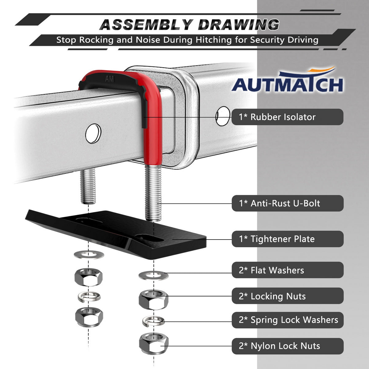 • Intended Use: Rich Coated Color Decorate and Stable Locked Down Hitches Stabilizer Fits for Variety Off-road Vehicles ,SUV, Vans, Trucks, RV, Sedans and Trailers.