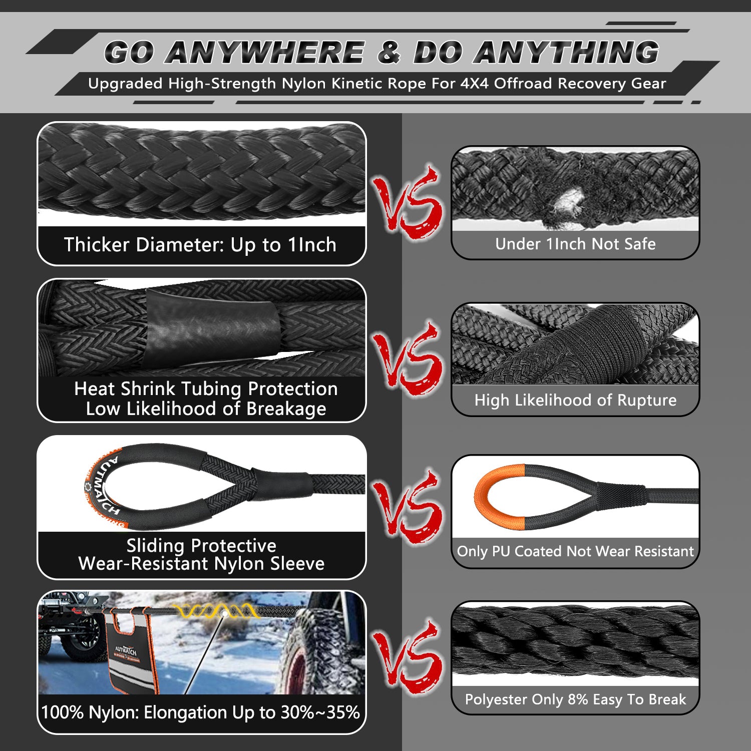- Feature: The Kinetic Tow Rope Use 24-Strand Double-Layer Braided Nylon Structure For Extended Durability, Equipped with Upgraded Protective Sleeves and Auxiliary Shrink Tubes To Prevent Physical Wear and Tear While Easily Handling All Difficult Towing Points