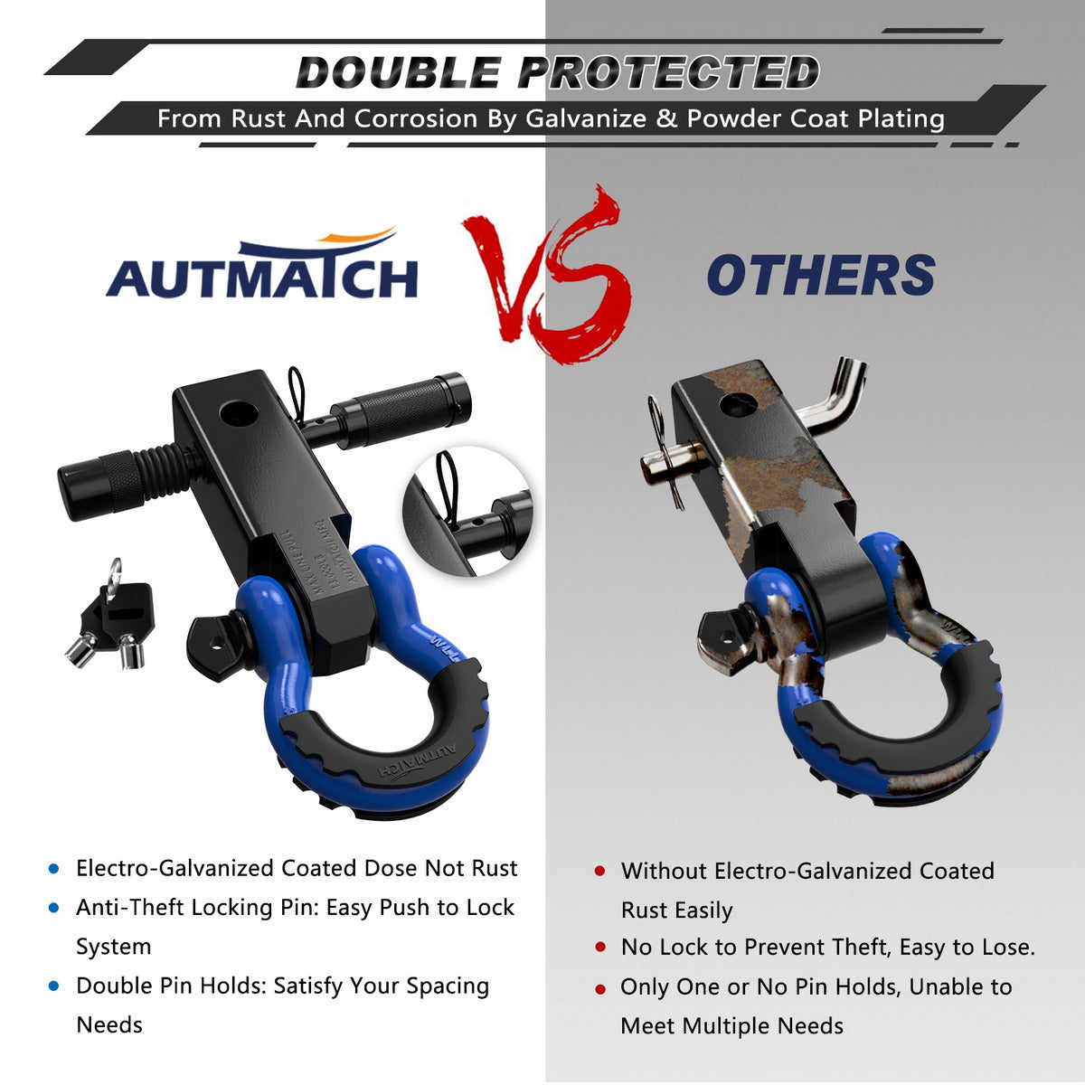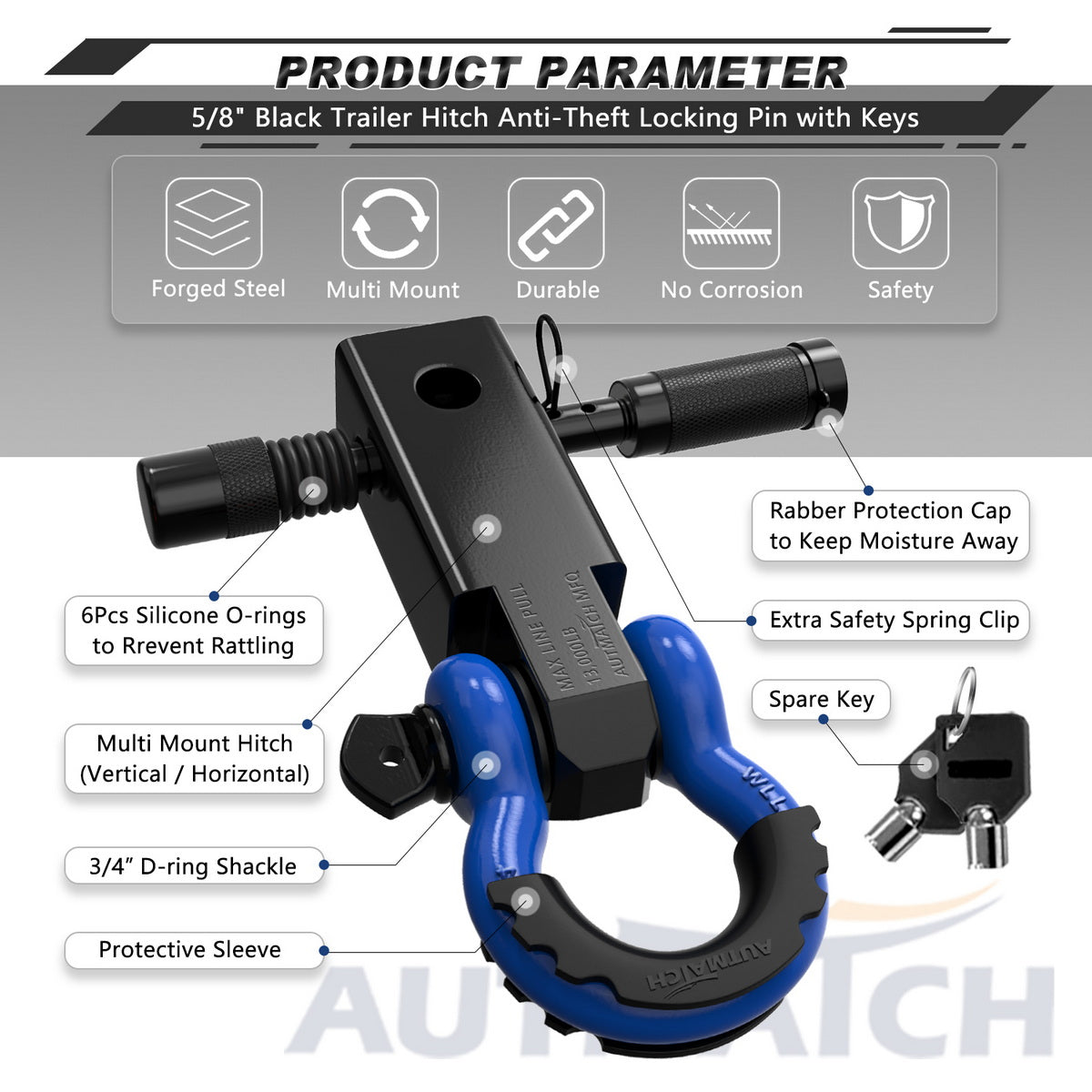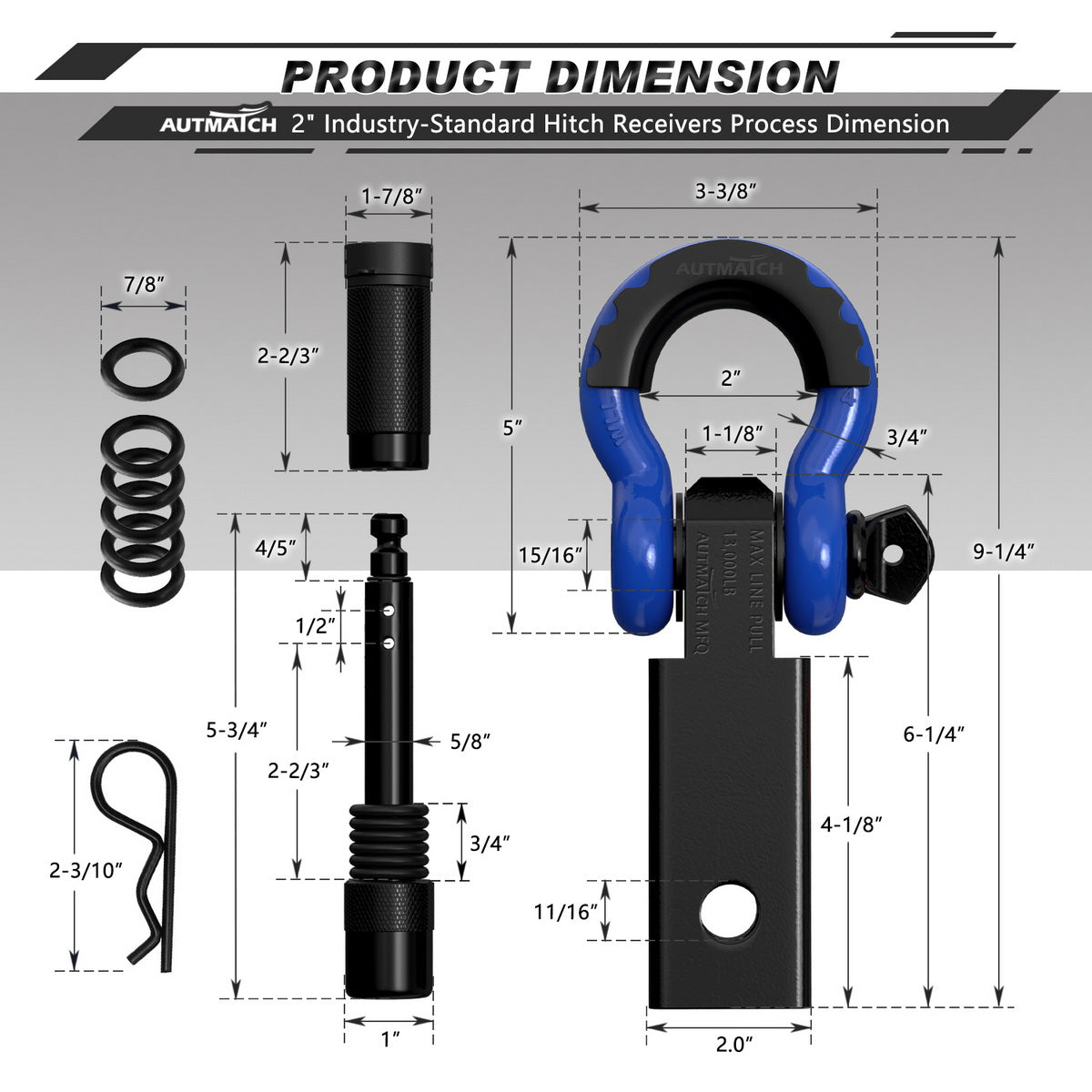- Fitted Suite: 2" Shackle Hitch Receiver, Anti-Theft 5/8" Trailer Hitch Lock Pin, 3/4" D-ring Shackle with Shackle Isolator & 4Pcs Washers kits, Protect The Bumper From Scratches and Prevent Rattling and Stolen