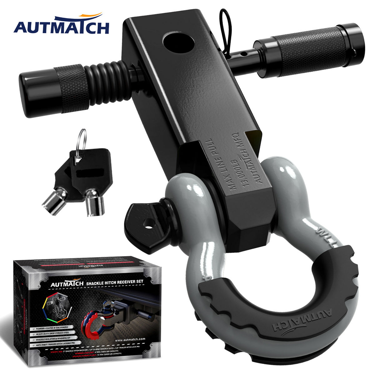 - Super Quality: Shackle Hitch Receiver Set Was Made of High-Strength Drop Forged Steel, The Straight-line Pull of Up to 13,000LBS and 35,000LBS of Max Breaking Strength to Keep It Safety & Stability
