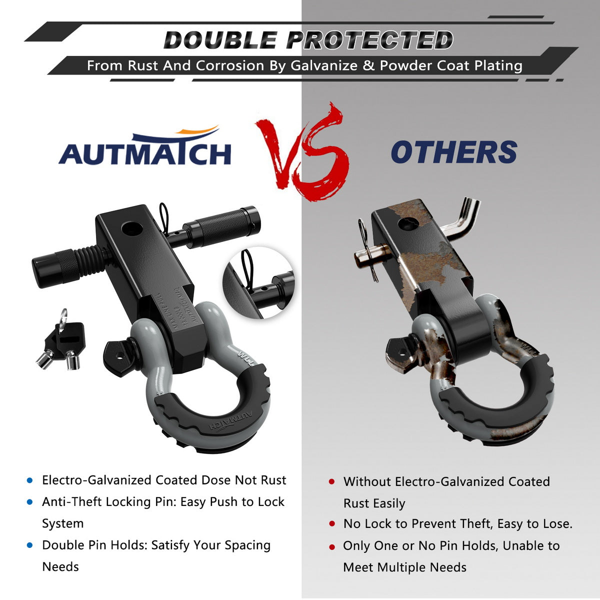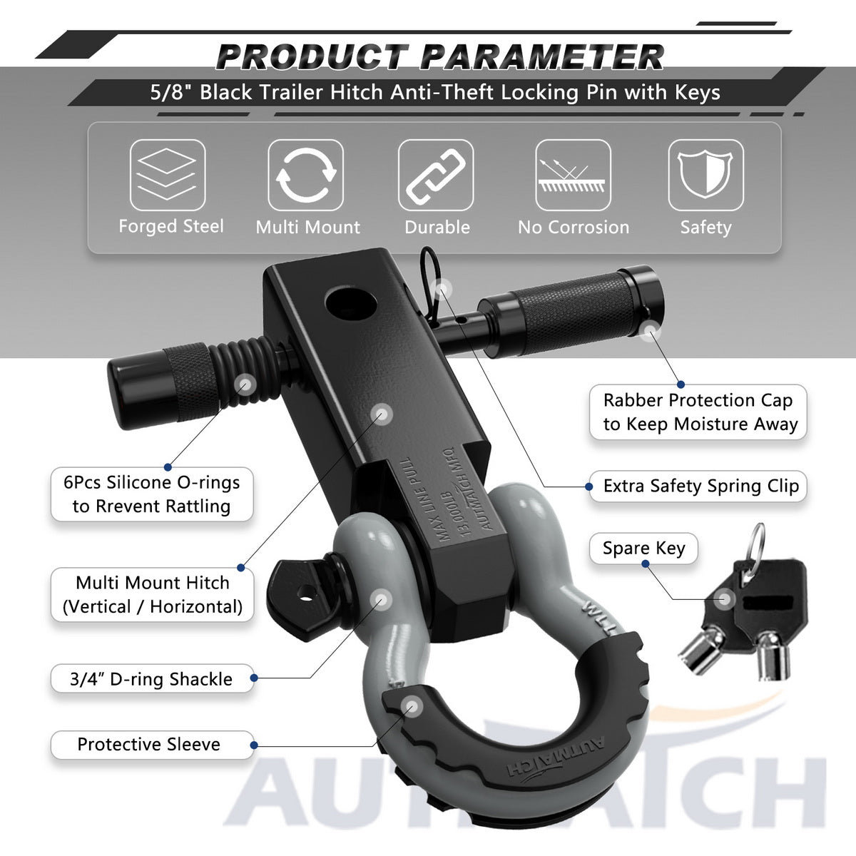 - Fitted Suite: 2" Shackle Hitch Receiver, Anti-Theft 5/8" Trailer Hitch Lock Pin, 3/4" D-ring Shackle with Shackle Isolator & 4Pcs Washers kits, Protect The Bumper From Scratches and Prevent Rattling and Stolen