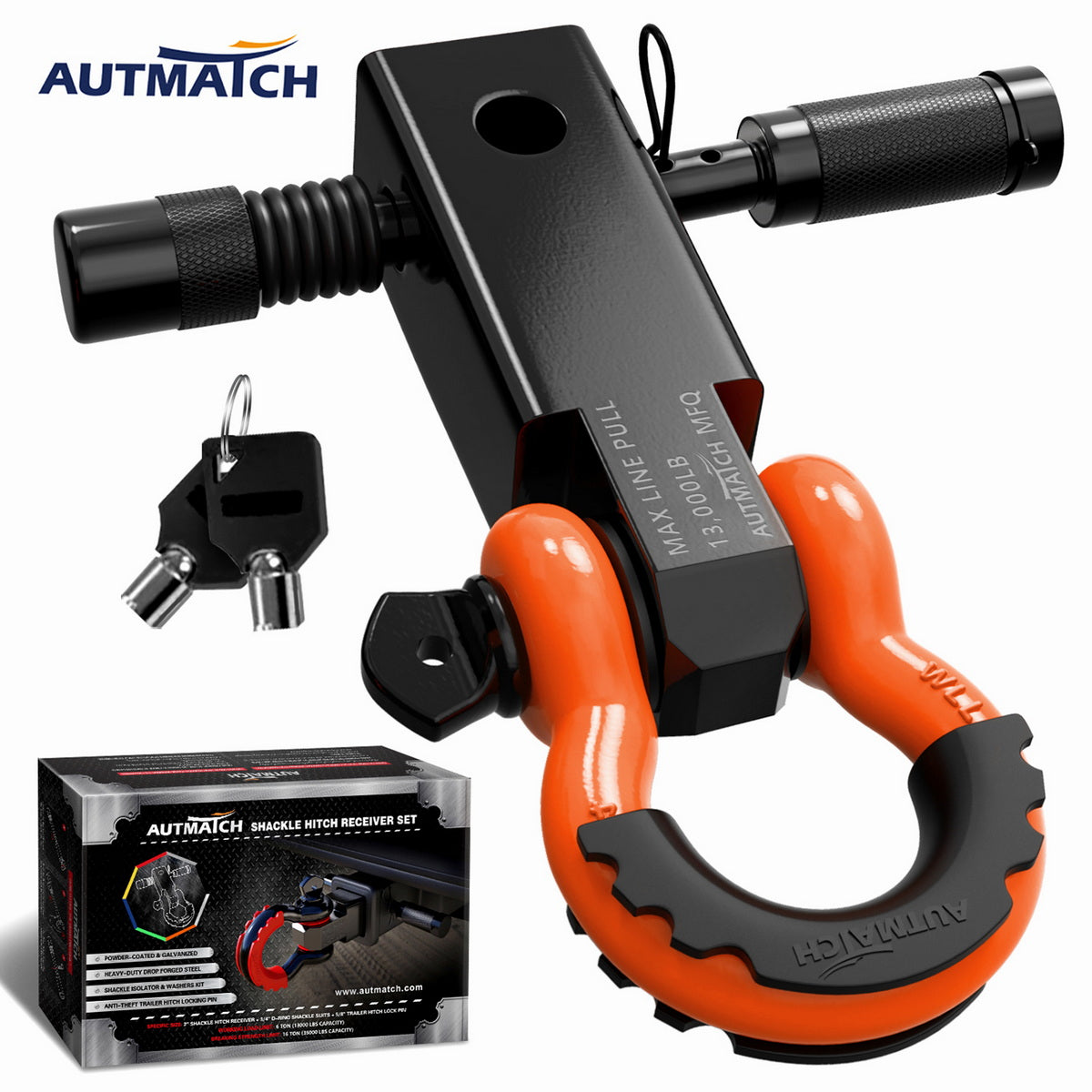 - Super Quality: Shackle Hitch Receiver Set Was Made of High-Strength Drop Forged Steel, The Straight-line Pull of Up to 13,000LBS and 35,000LBS of Max Breaking Strength to Keep It Safety & Stability