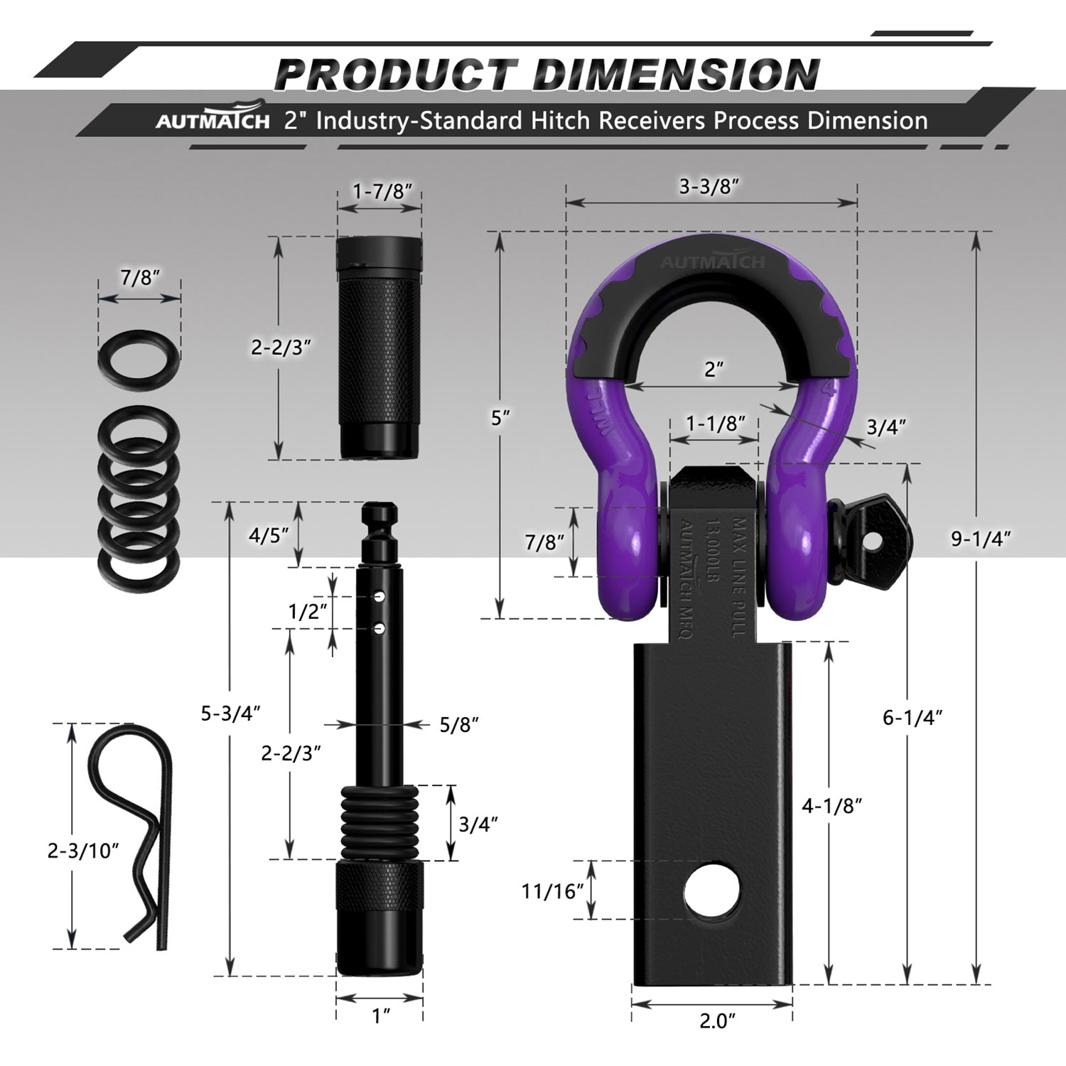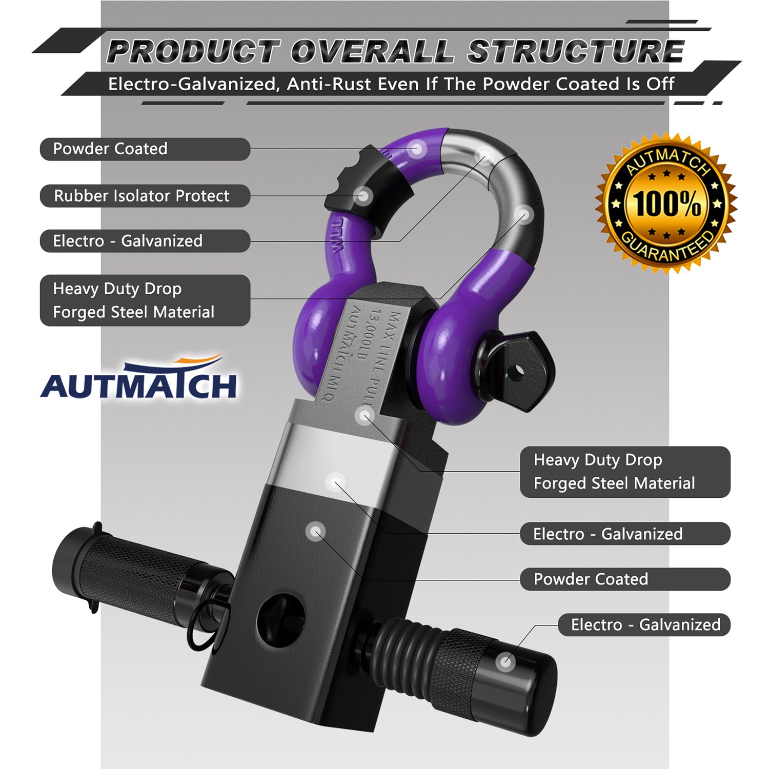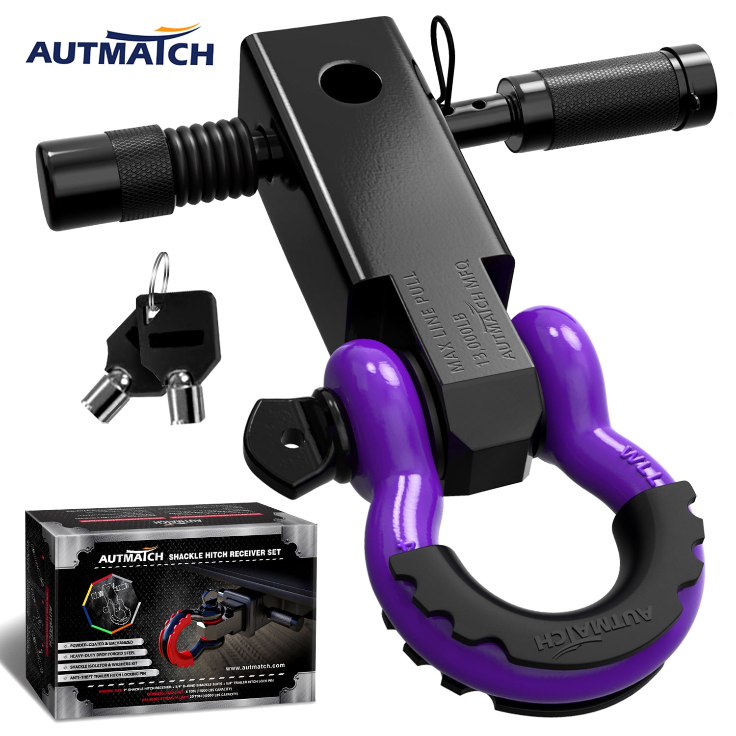 AUTMATCH Shackle Hitch Receiver 2 Inch with 3/4" D Ring Shackle and 5/8" Trailer Hitch Lock Pin 45,000 Lbs Break Strength Black & Purple