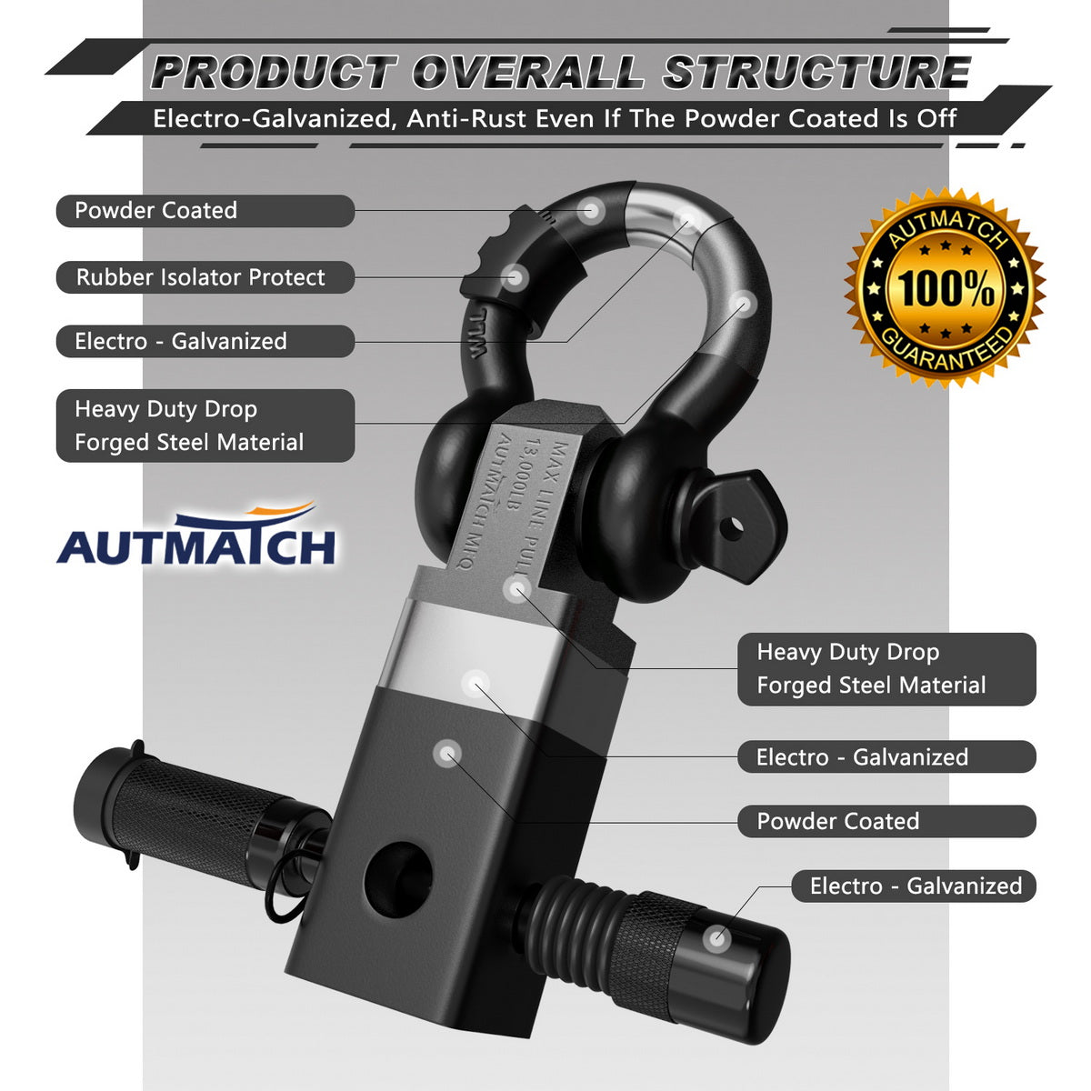 - Super Quality: Shackle Hitch Receiver Set Was Made of High-Strength Drop Forged Steel, The Straight-line Pull of Up to 13,000LBS and 35,000LBS of Max Breaking Strength to Keep It Safety & Stability