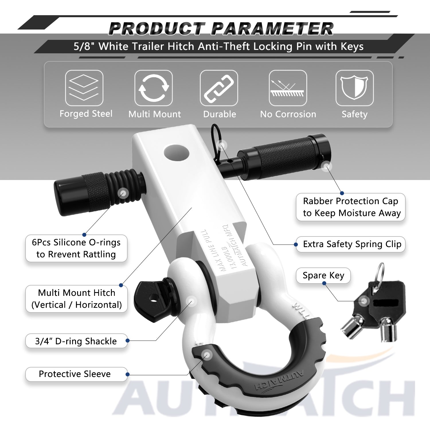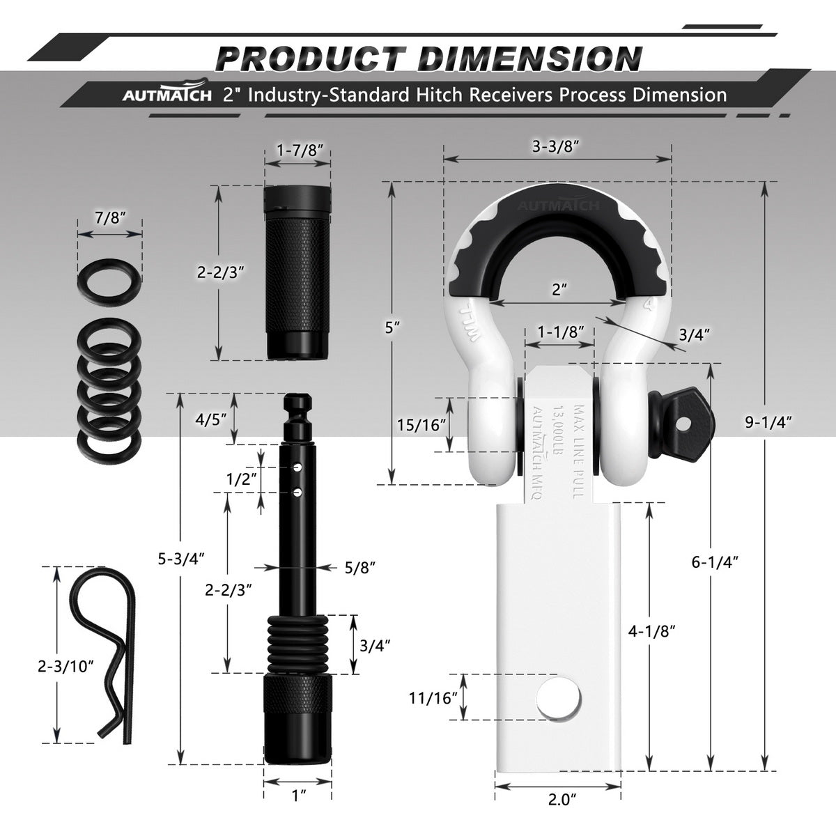 - Fitted Suite: 2" Shackle Hitch Receiver, Anti-Theft 5/8" Trailer Hitch Lock Pin, 3/4" D-ring Shackle with Shackle Isolator & 4Pcs Washers kits, Protect The Bumper From Scratches and Prevent Rattling and Stolen