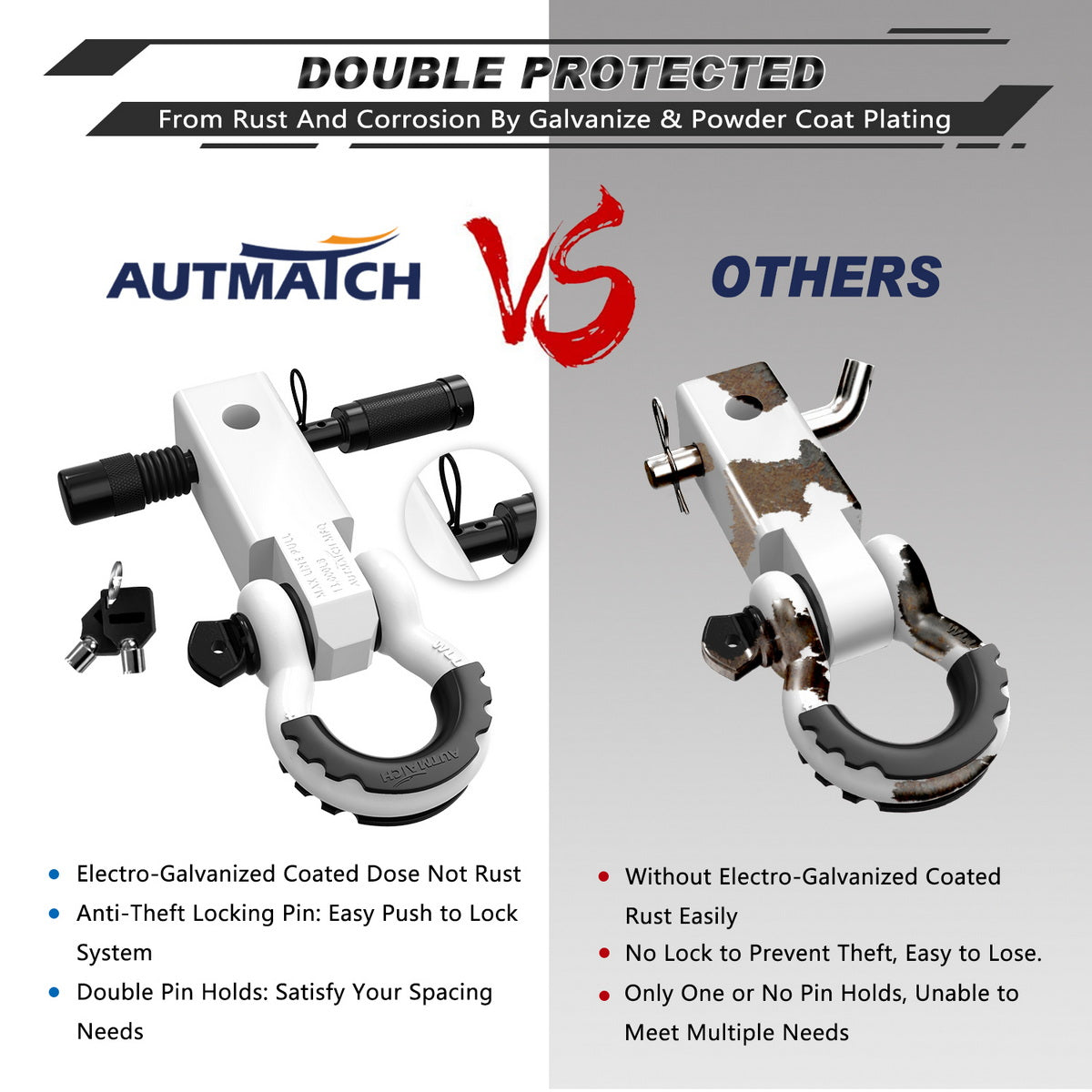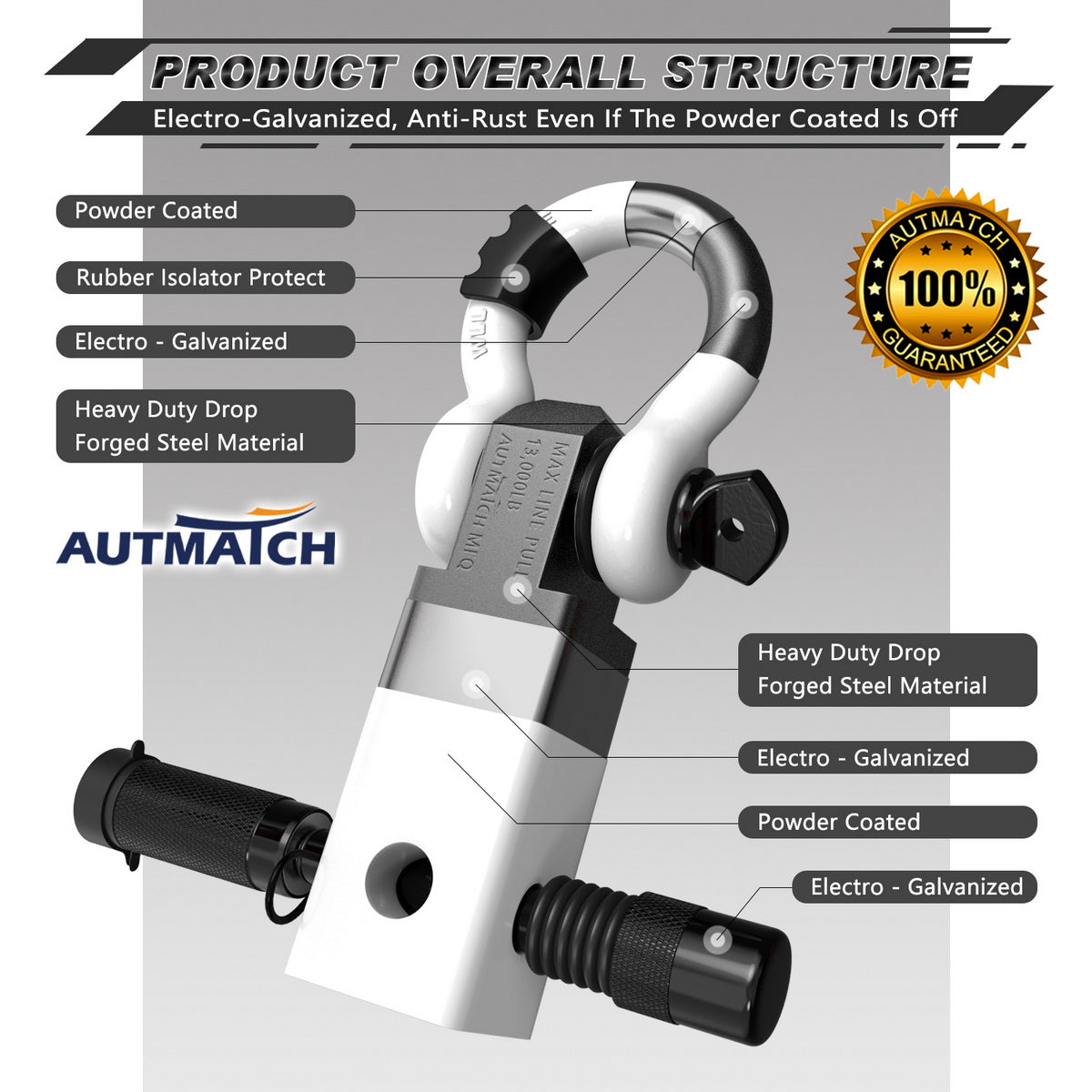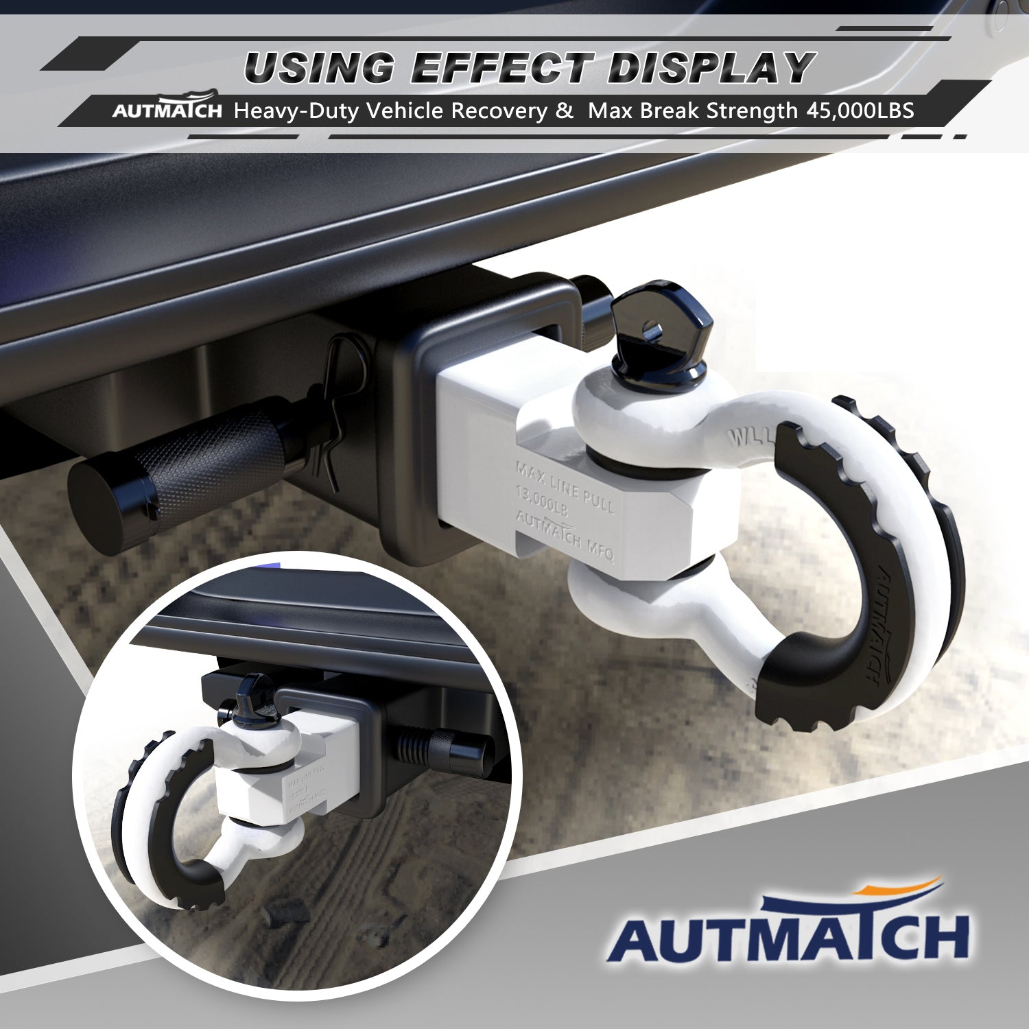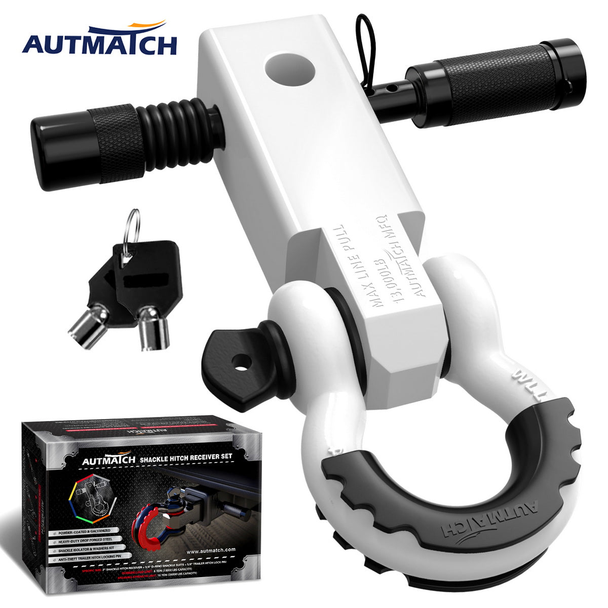 AUTMATCH Shackle Hitch Receiver 2 Inch with 3/4" D Ring Shackle and 5/8" Trailer Hitch Lock Pin 45,000 Lbs Break Strength White