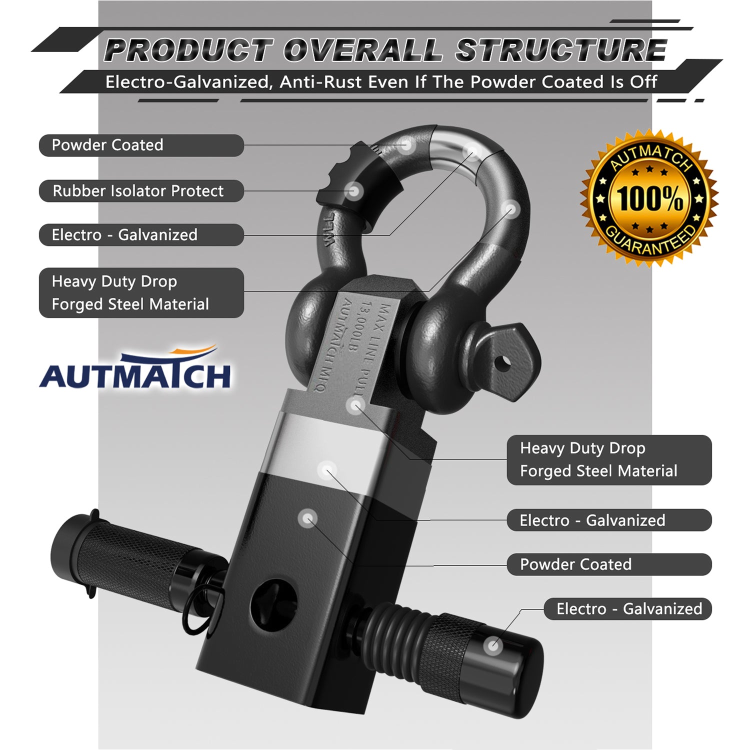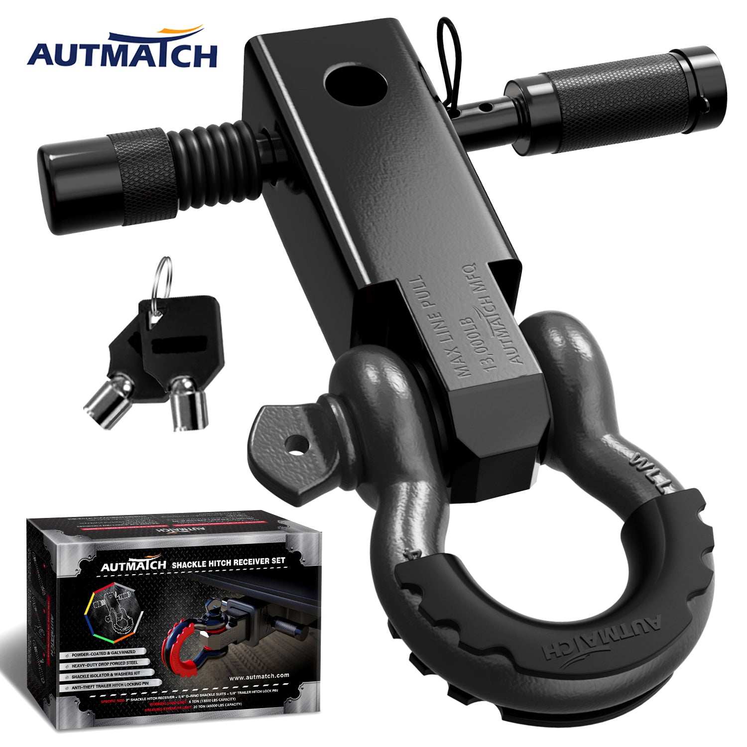 - Super Quality: Shackle Hitch Receiver Set Was Made of High-Strength Drop Forged Steel, The Straight-line Pull of Up to 13,000LBS and 35,000LBS of Max Breaking Strength to Keep It Safety & Stability