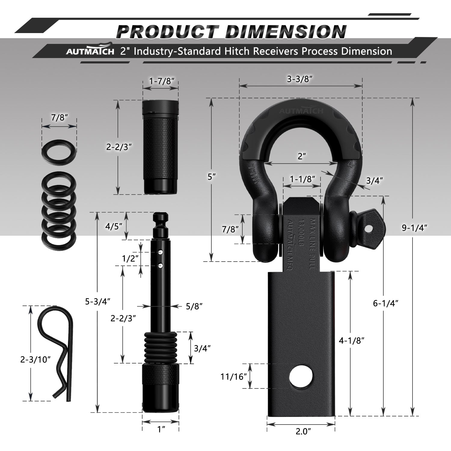 - Fitted Suite: 2" Shackle Hitch Receiver, Anti-Theft 5/8" Trailer Hitch Lock Pin, 3/4" D-ring Shackle with Shackle Isolator & 4Pcs Washers kits, Protect The Bumper From Scratches and Prevent Rattling and Stolen