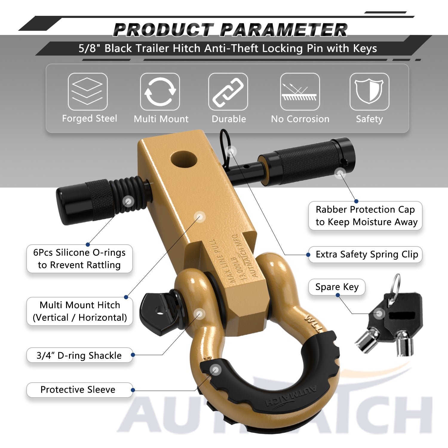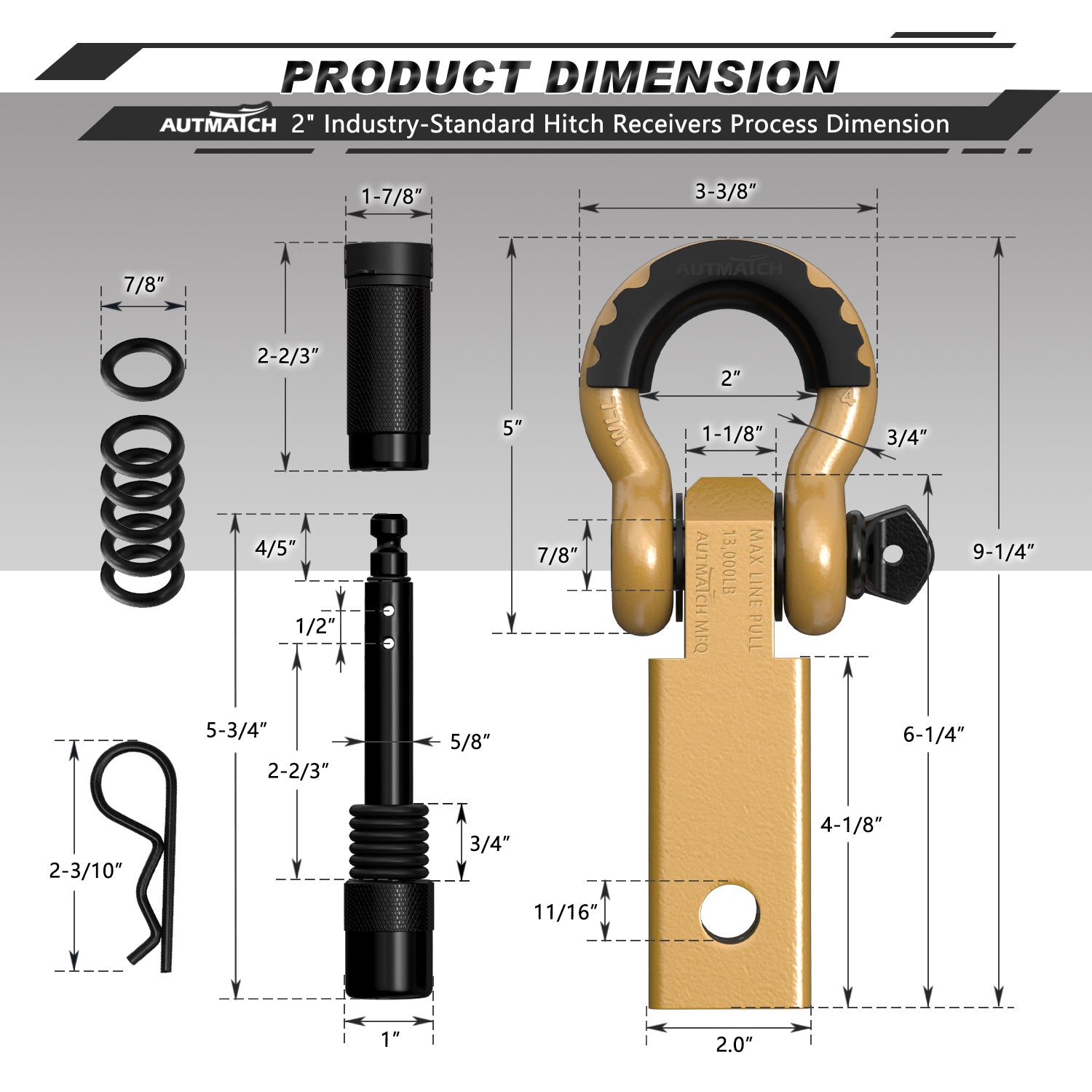 - Fitted Suite: 2" Shackle Hitch Receiver, Anti-Theft 5/8" Trailer Hitch Lock Pin, 3/4" D-ring Shackle with Shackle Isolator & 4Pcs Washers kits, Protect The Bumper From Scratches and Prevent Rattling and Stolen