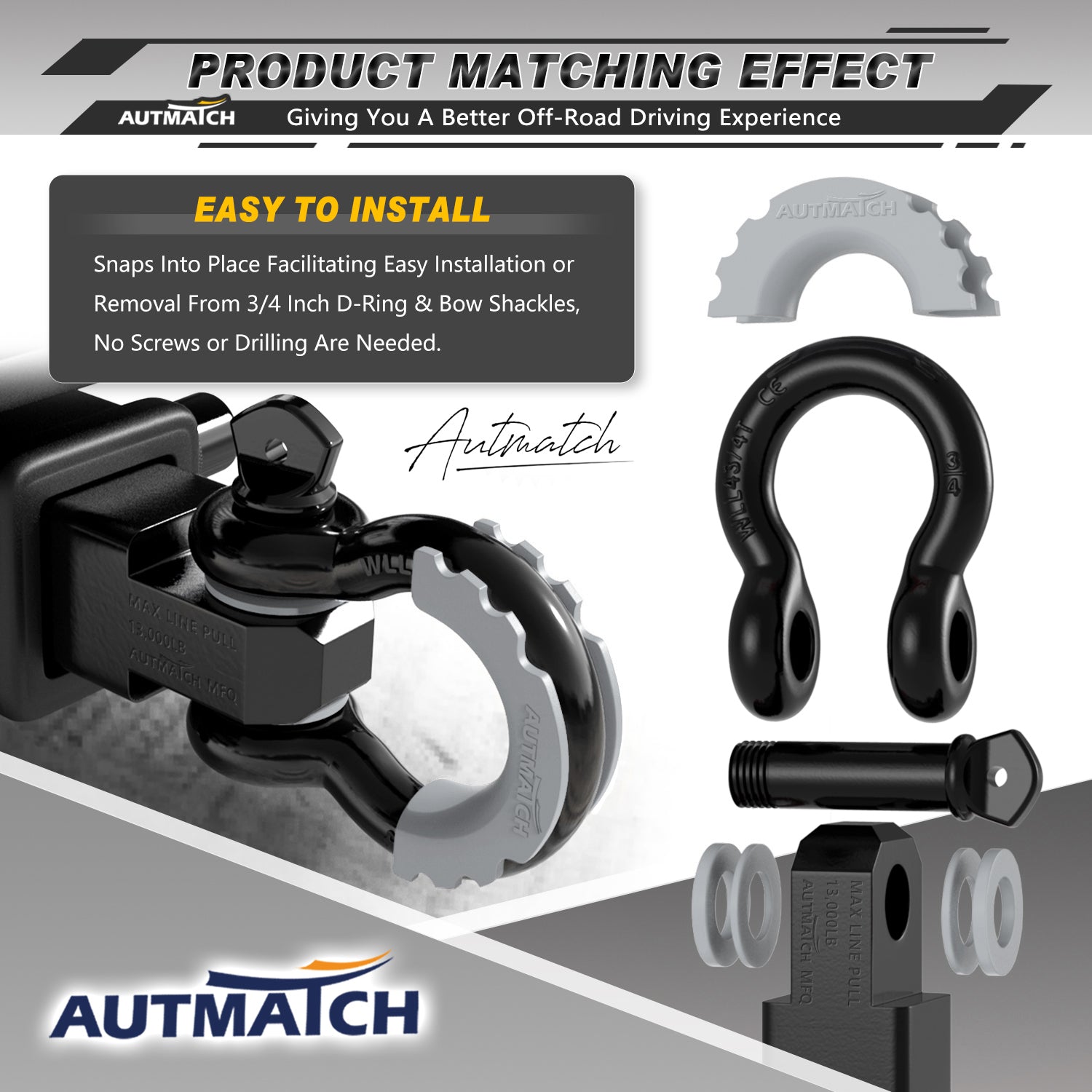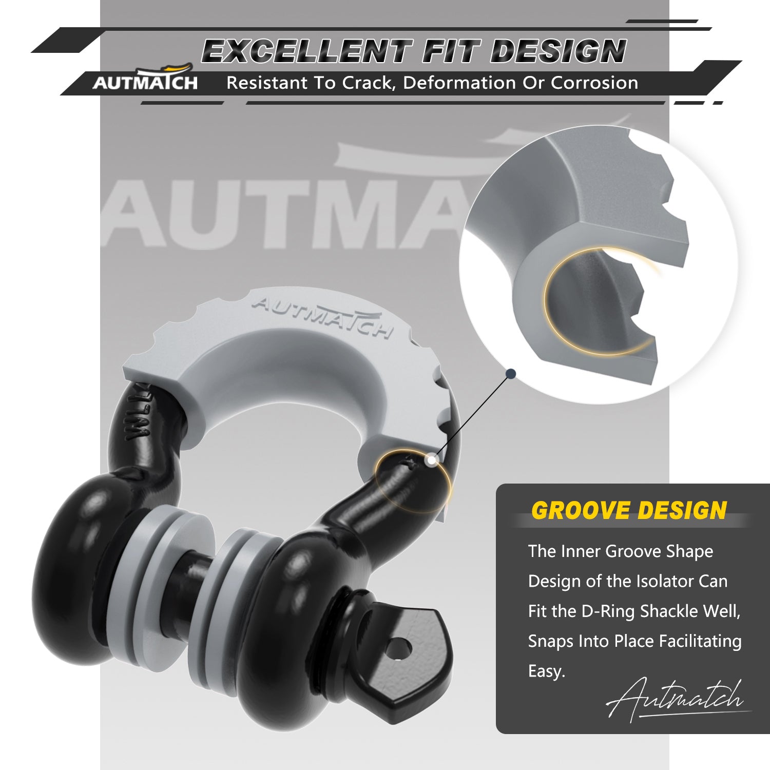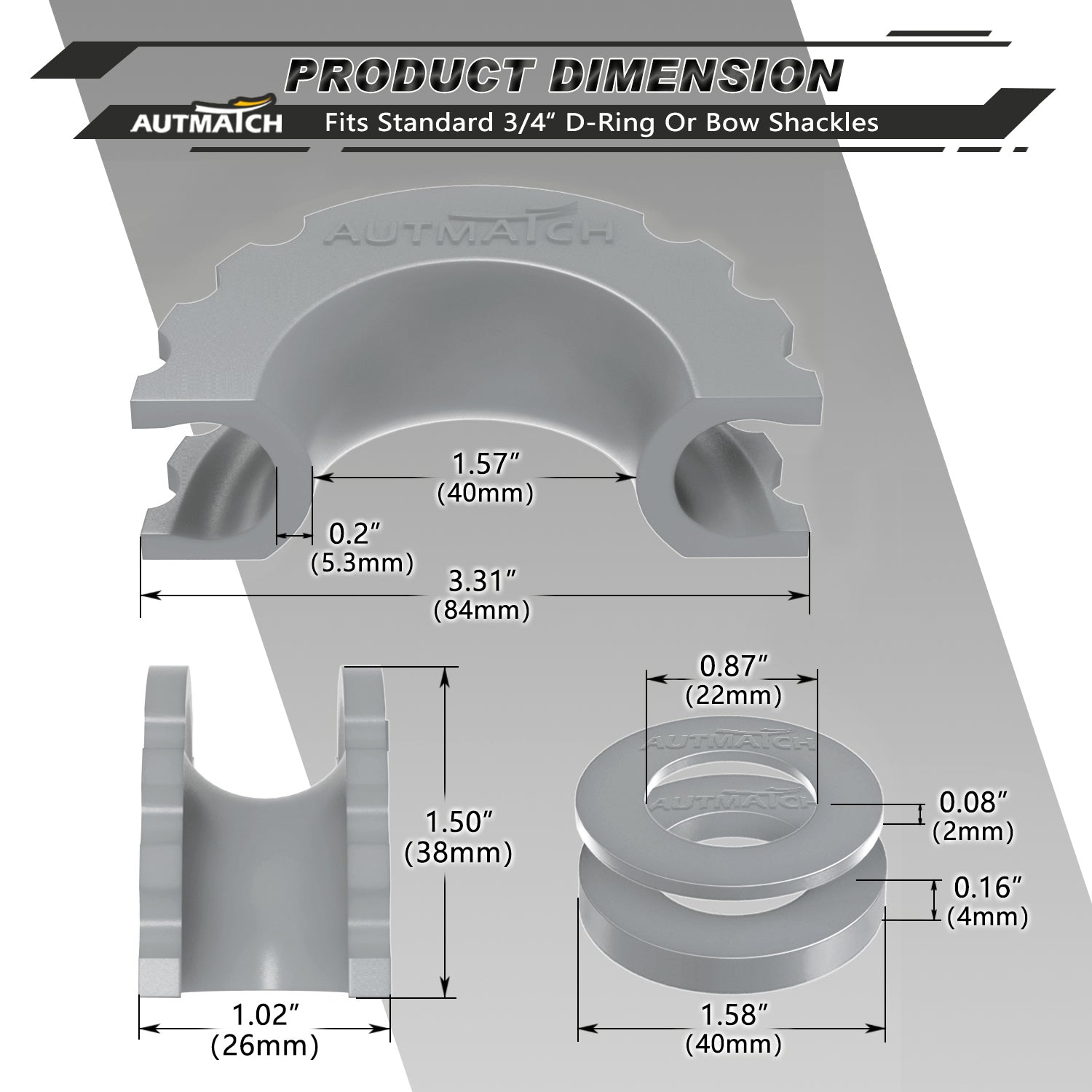 AUTMATCH 3/4" D-Ring Shackle Isolators Washers Kits Rubber Gear Design Rattling Protection Gray Shackle Cover 2Pcs
