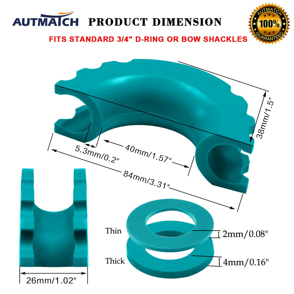AUTMATCH 3/4" D-Ring Shackle Isolators Washers Kits Rubber Gear Design Rattling Protection Teal Shackle Cover 2Pcs
