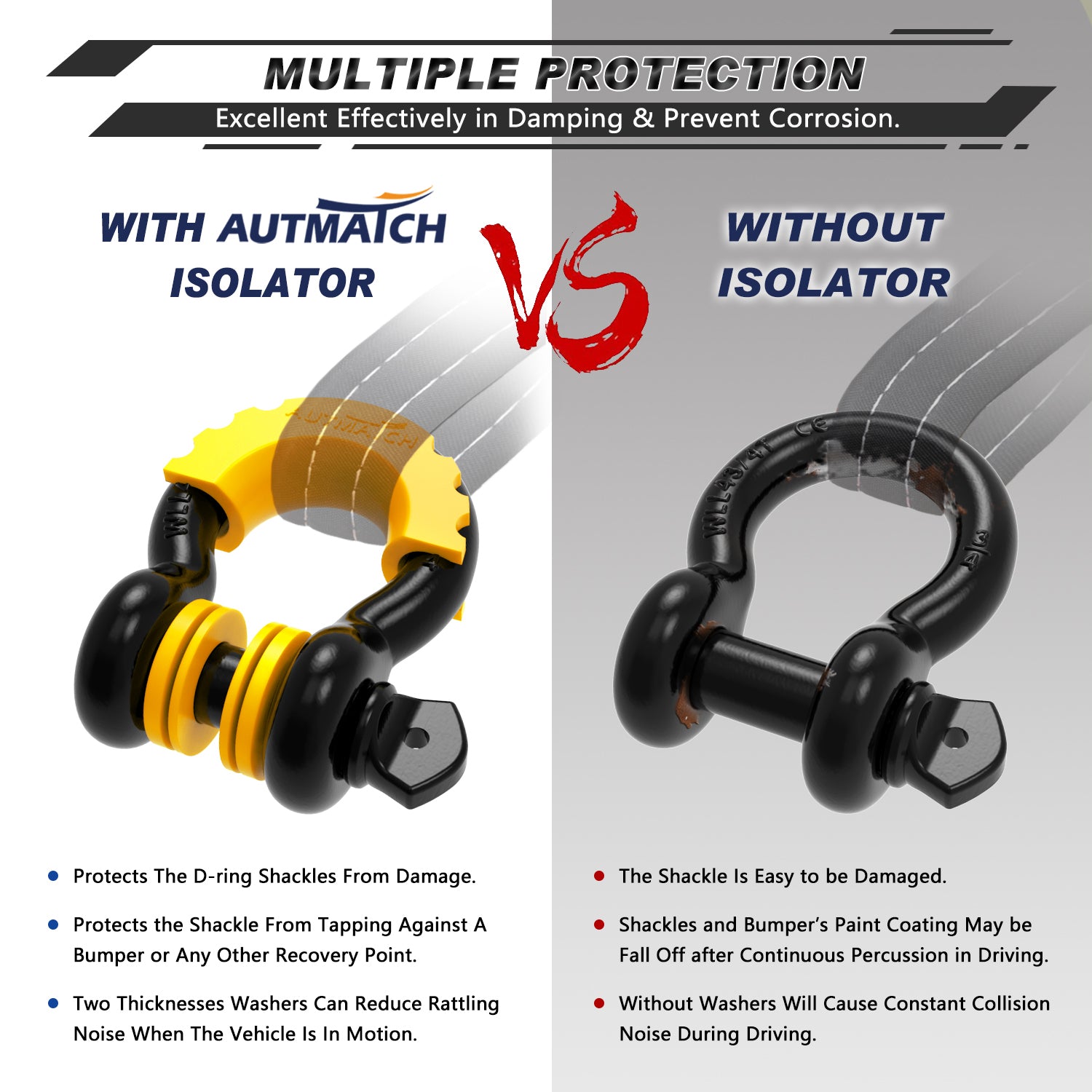 - Intended Use: The Isolator Protects the Shackle From Tapping Against A Bumper or Any Other Recovery Point and the Washers Reduce Rattling Noise When The Vehicle Is In Motion