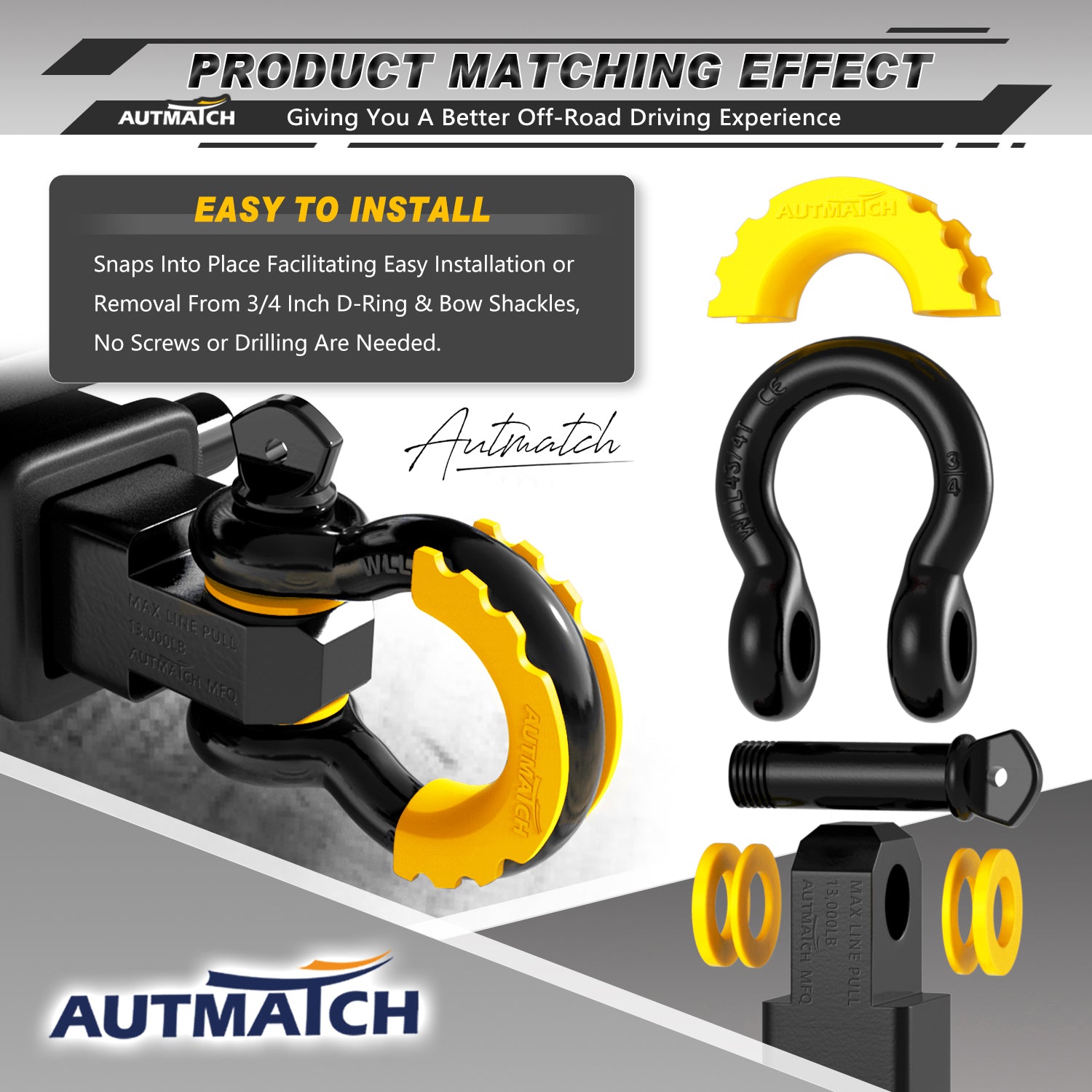 AUTMATCH 3/4" D-Ring Shackle Isolators Washers Kits Rubber Gear Design Rattling Protection Yellow Shackle Cover 2Pcs