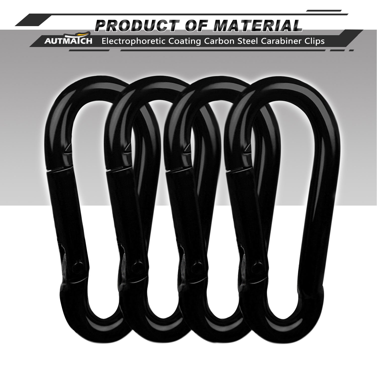 AUTMATCH Carabiner Clips, 3" Carbon Steel Spring Snap Hook Caribeener Clips Buckle Pack Grade Heavy Duty Carabiners Quick Link for Camping, Fishing, Hiking, Traveling, Black, 4 Pack