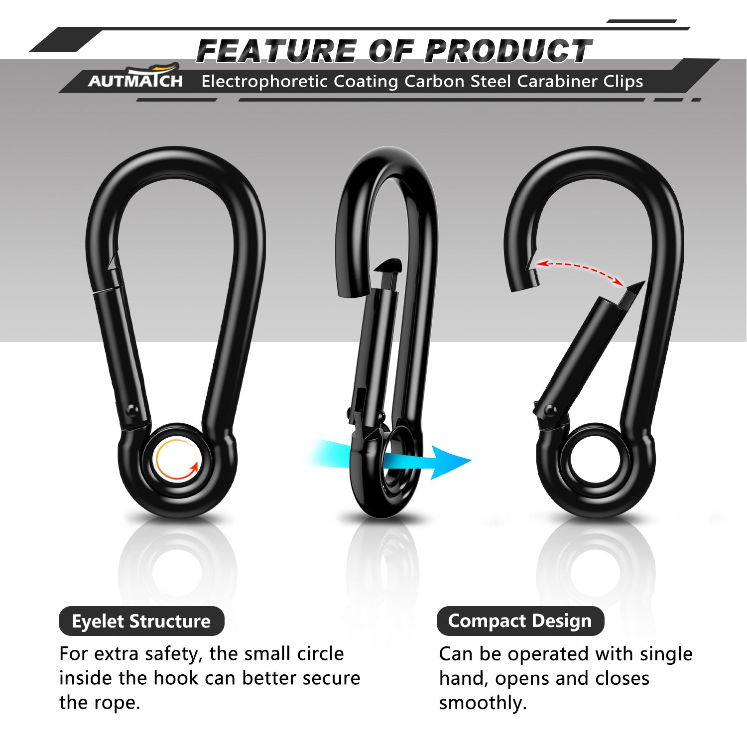 AUTMATCH Carabiner Clips, 3" Carbon Steel Spring Snap Hook Caribeener Clips Buckle Pack Grade Heavy Duty Carabiners Quick Link for Camping, Fishing, Hiking, Traveling, Circle Black, 4 Pack