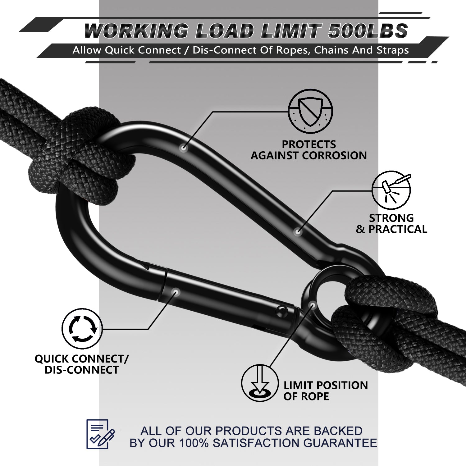 - Capacity: Working Load Limit 500Lbs/230Kg, and Allow Quick Connect / Dis-Connect Of Ropes, Chains and Straps