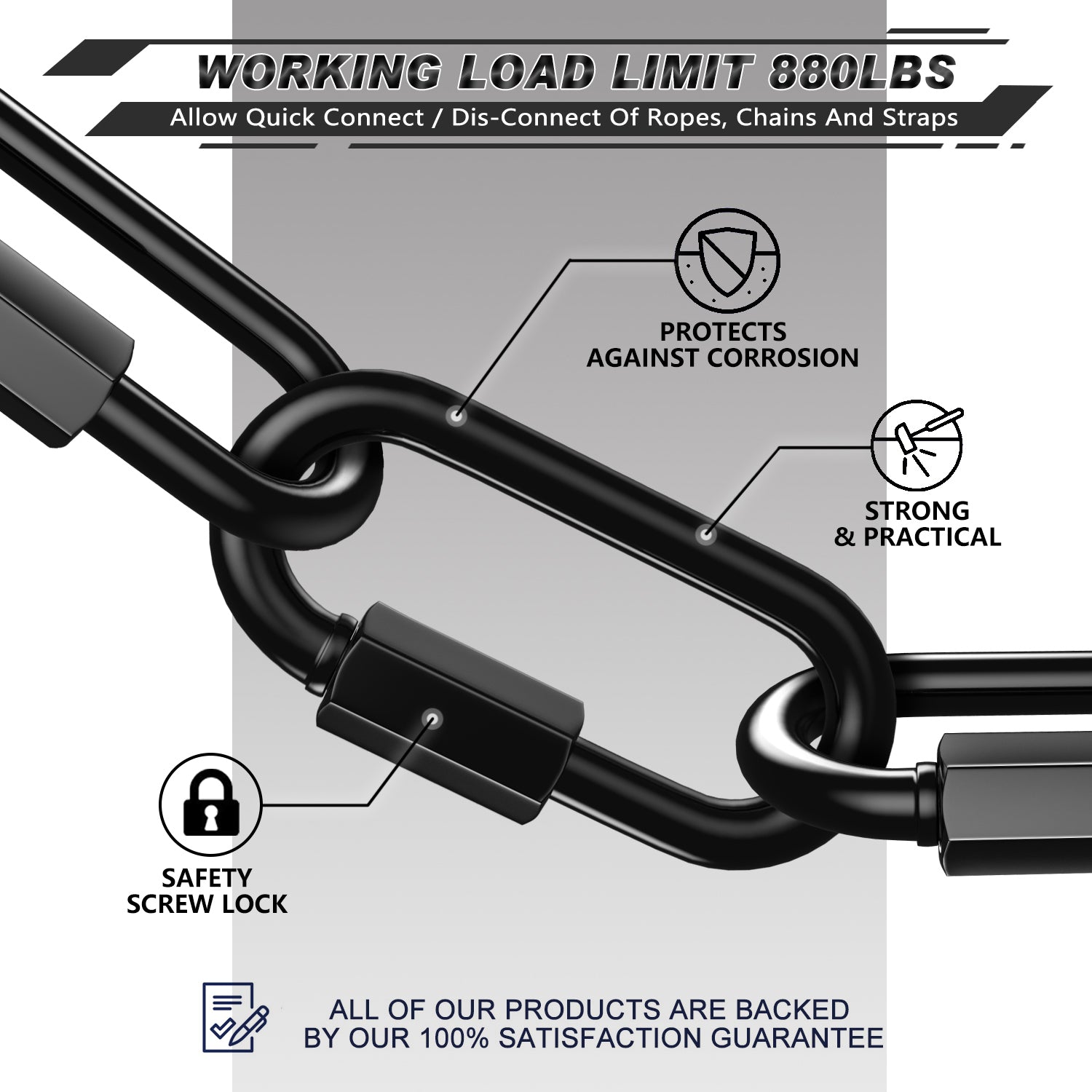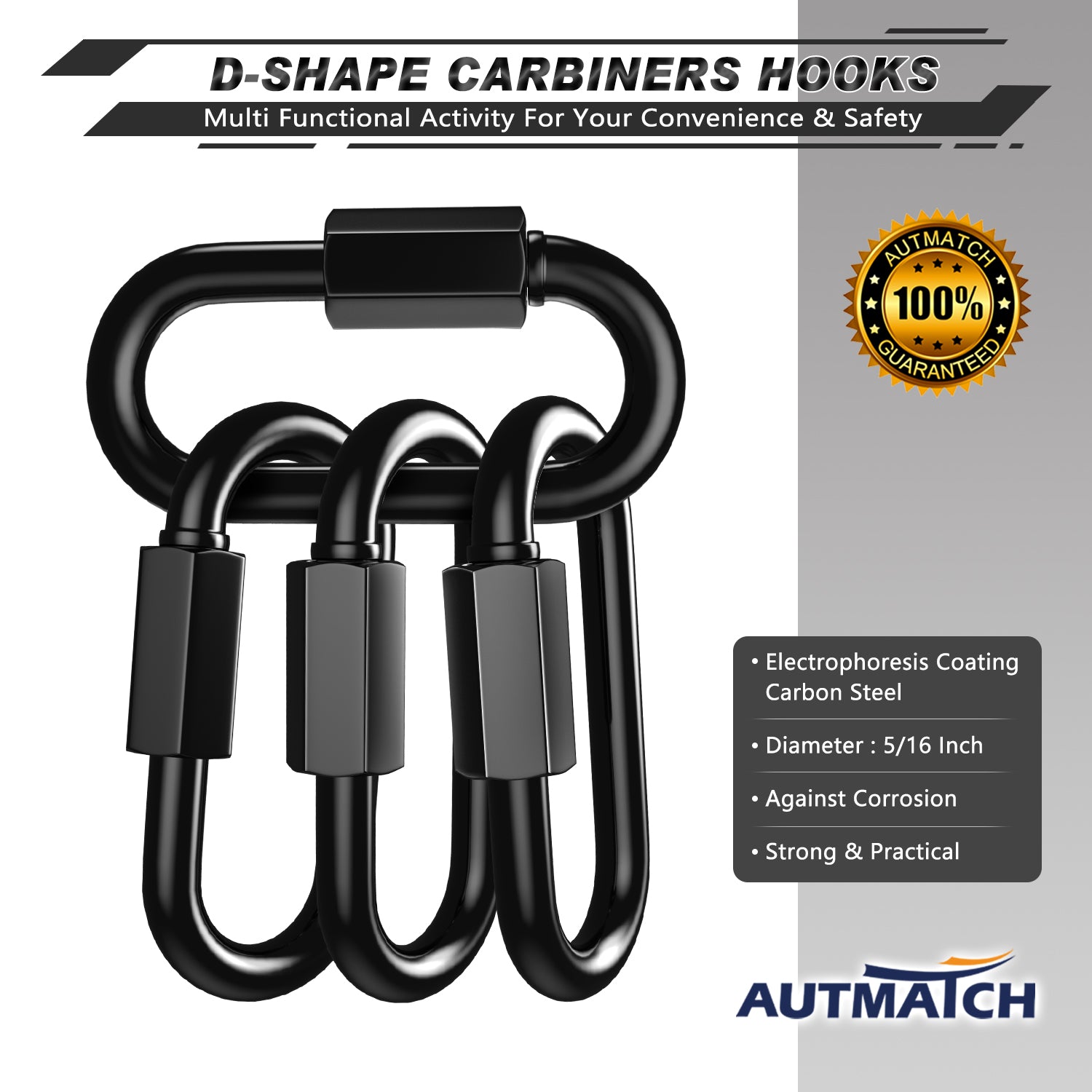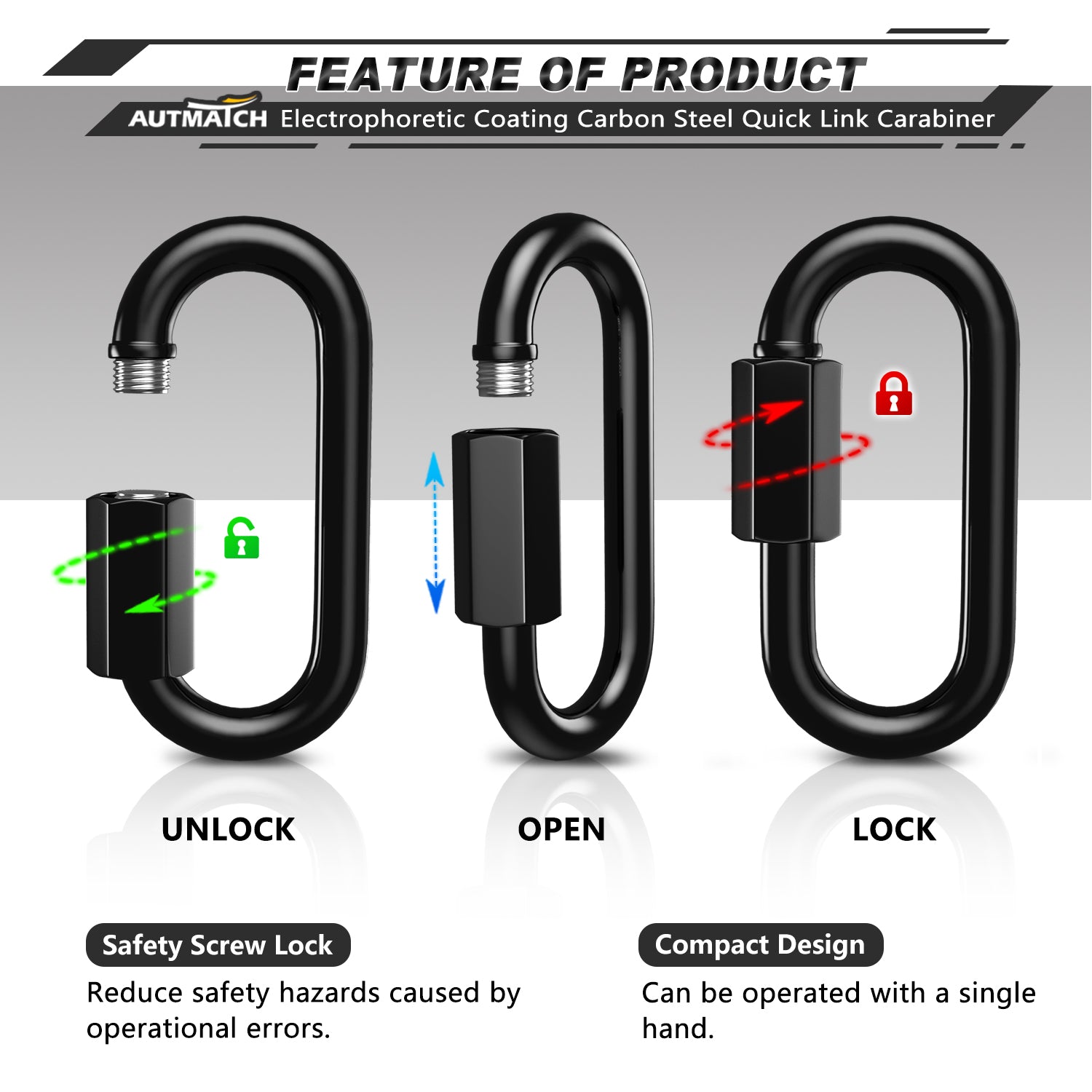 AUTMATCH Chain Quick Links, 3" Locking Carabiner Clips Spring Snap Hook Caribeener Clips Heavy Duty Chain Connector for Camping, Fishing, Hiking, Traveling, Chain Links Black, 4 Pack