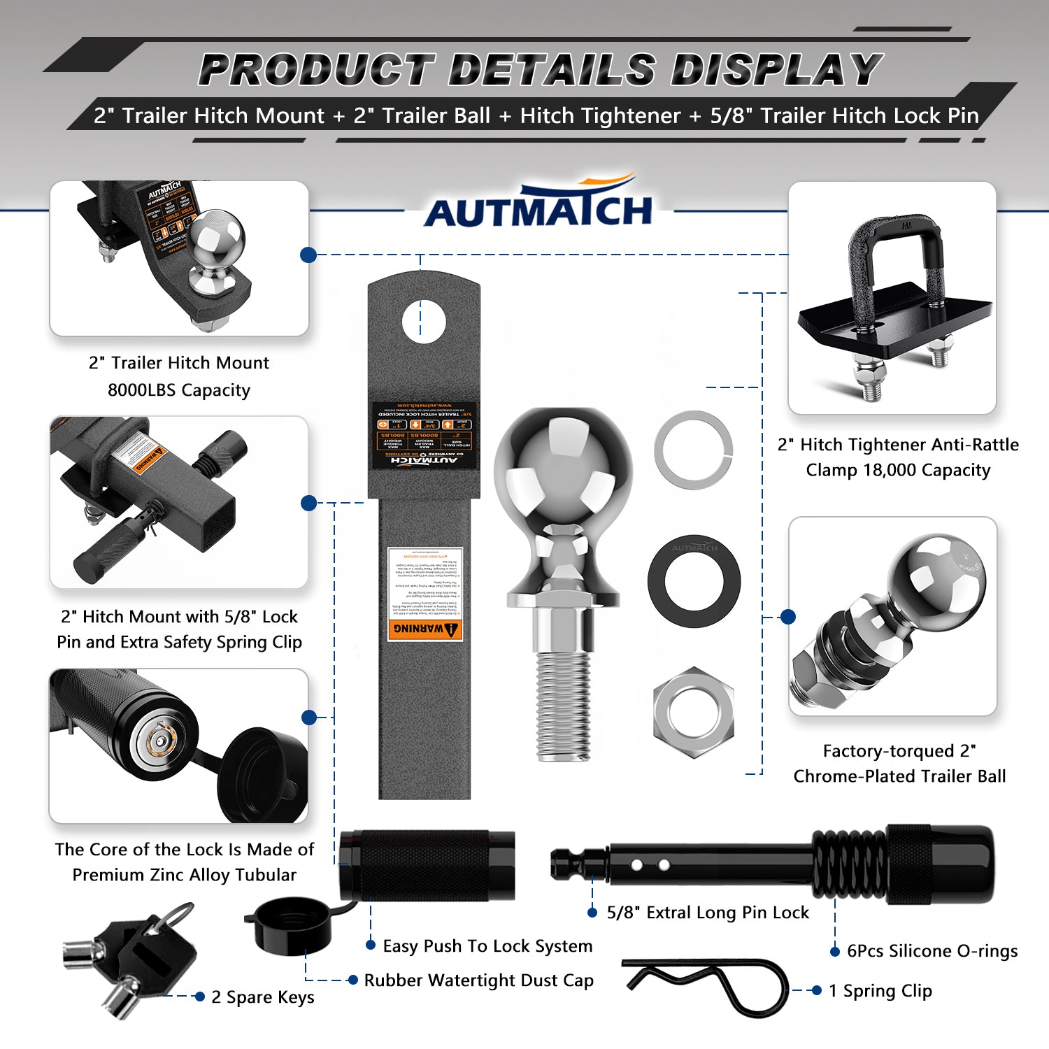 - Fitted Suite: 5/8" Anti-Theft Trailer Hitch Lock Pin Protect Property Against Theft, The Push-To-Lock Key Design Easy To Operate + Hitch Tightener Anti-Rattle Clamp Ensures Eliminate Of Wobble, Rattle & Noise, Provide A Quiet And Stable Towing & Hauling Experience