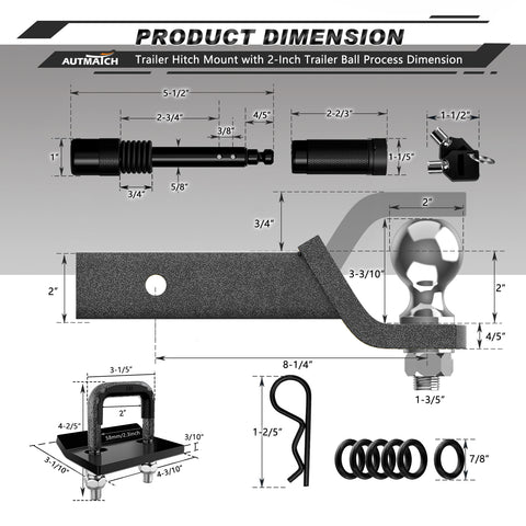 Versatile Use: This Trailer Hitch Ball Mount Matched with A 2 Inch X 2 Inch Shank To Fit Virtually Any Industry-Standard 2-Inch Receivers. The Ball Mount Also Has A 2 Inch Drop And 3/4" Rise To Promote Level Towing With Your Own Vehicle-Trailer Setup