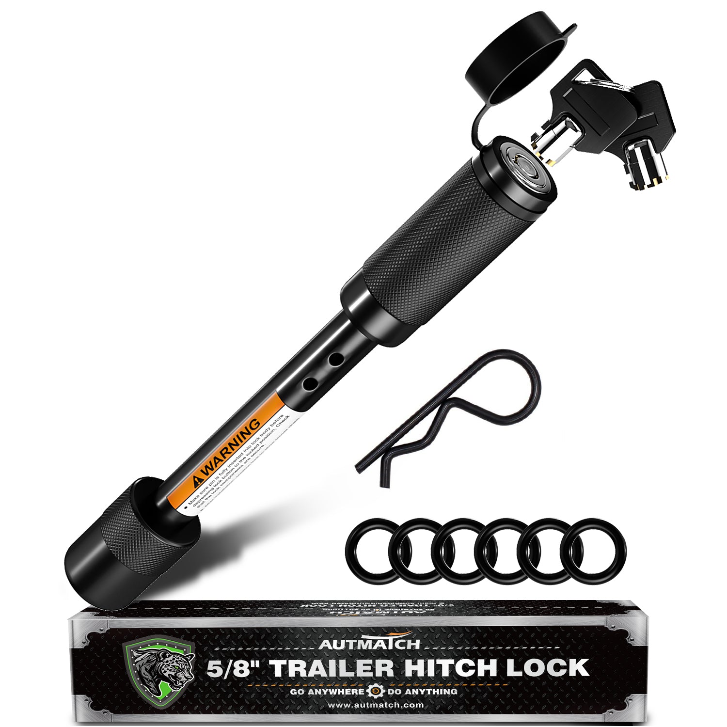 AUTMATCH Trailer Hitch Lock - 5/8" Locking Receiver Hitch Pin with Extra Long 4" Span, Fits Class III IV V 2", 2-1/2", 3" & 3-1/2" Receiver, Anti-Theft Hitch Receiver Lock for Tow Truck Car, Black