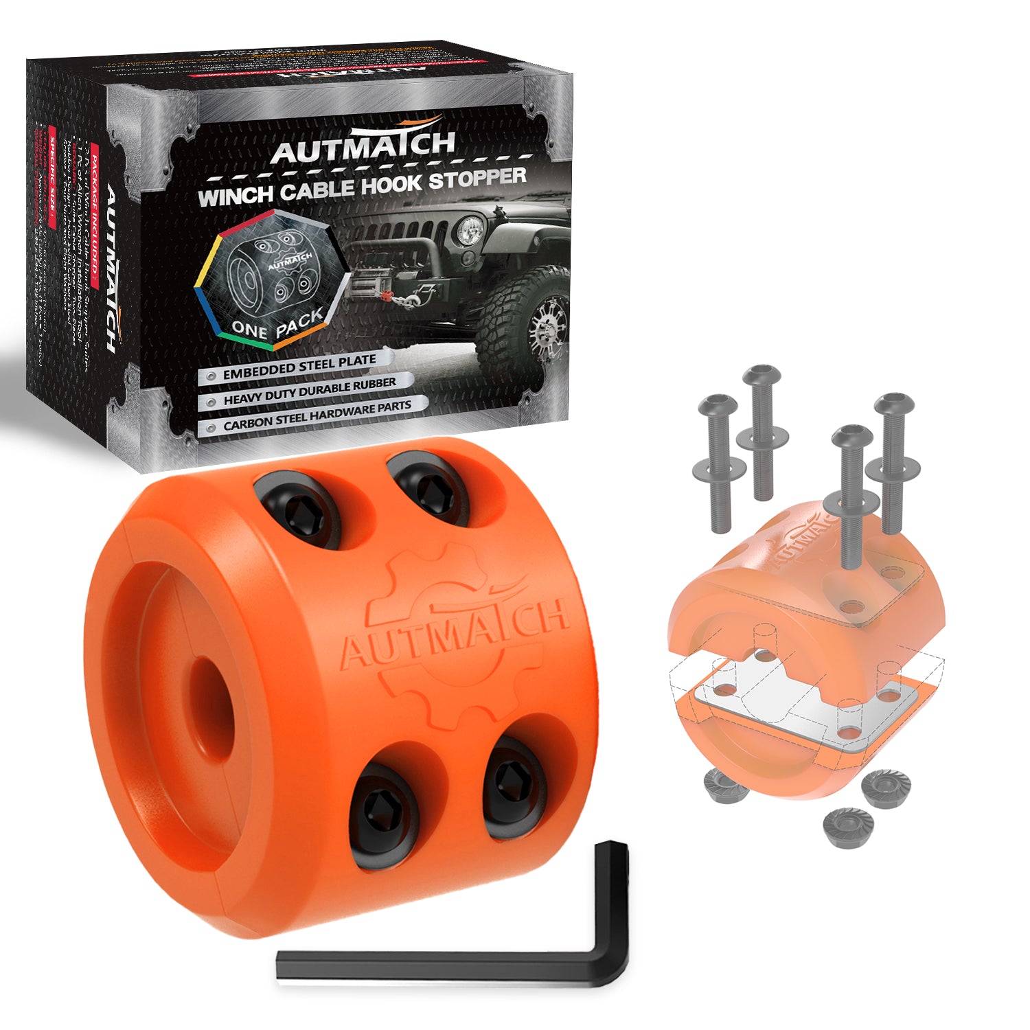 AUTMATCH Winch Cable Hook Stopper (1 Pack) Silicone Rubber Shock Absorbent Winch Stopper Orange