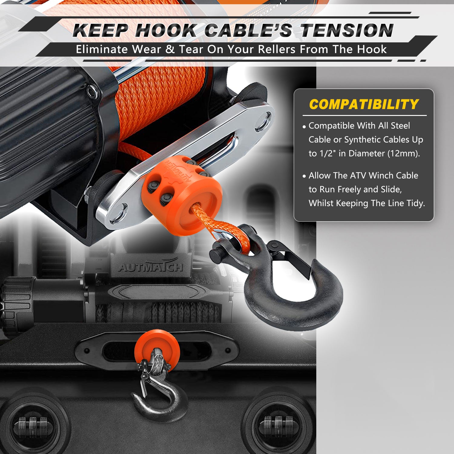 - Compatibility: Compatible With All Steel Cable or Synthetic Cables Up to 1/2" in Diameter (12mm). Allow The ATV Winch Cable to Run Freely and Slide, Whilst Keeping The Line Tidy. Protect Your Winching Gear Like Never Before. For Trucks, ATV, UTV, ORV, Trailers, and Sport-Utility Vehicles Etc
