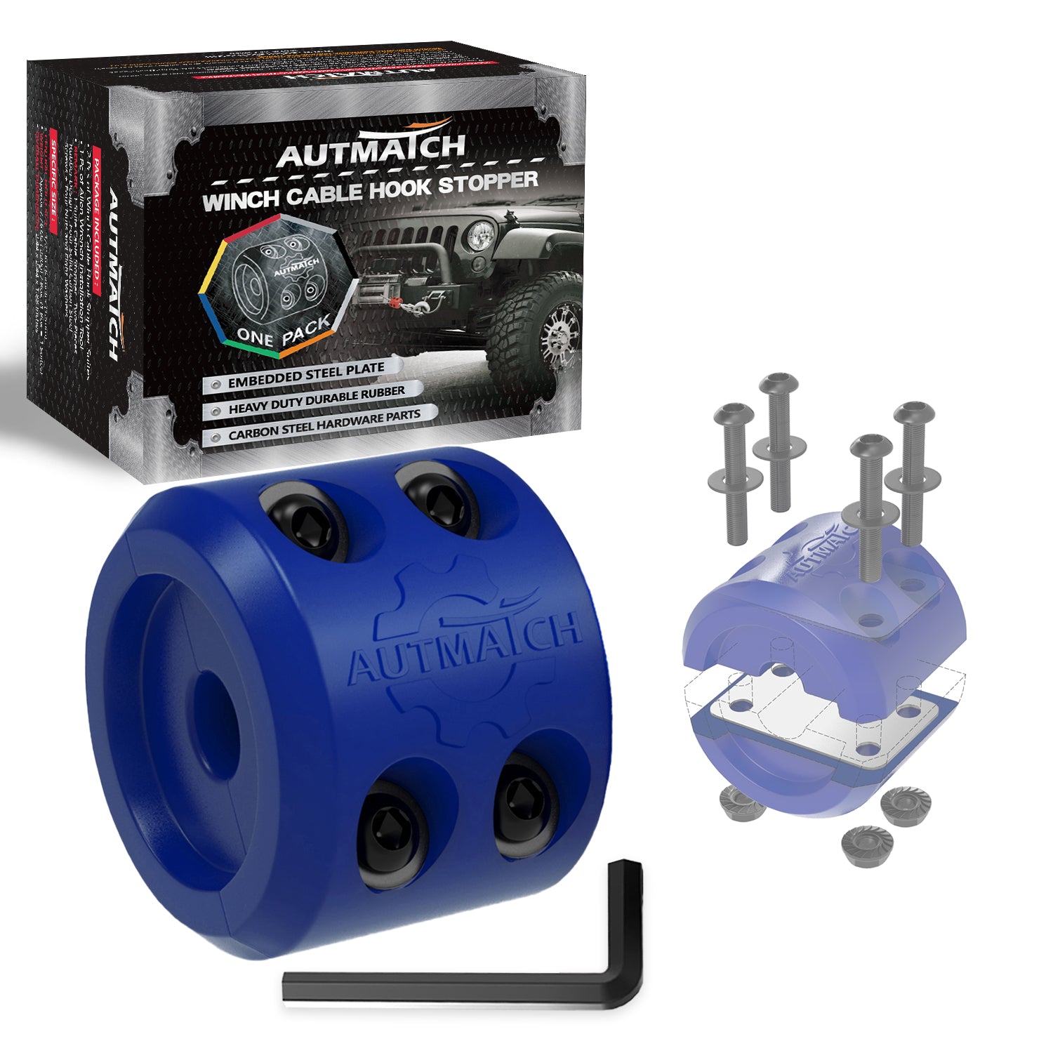 AUTMATCH Winch Cable Hook Stopper (1 Pack) Silicone Rubber Shock Absorbent Winch Stopper Blue
