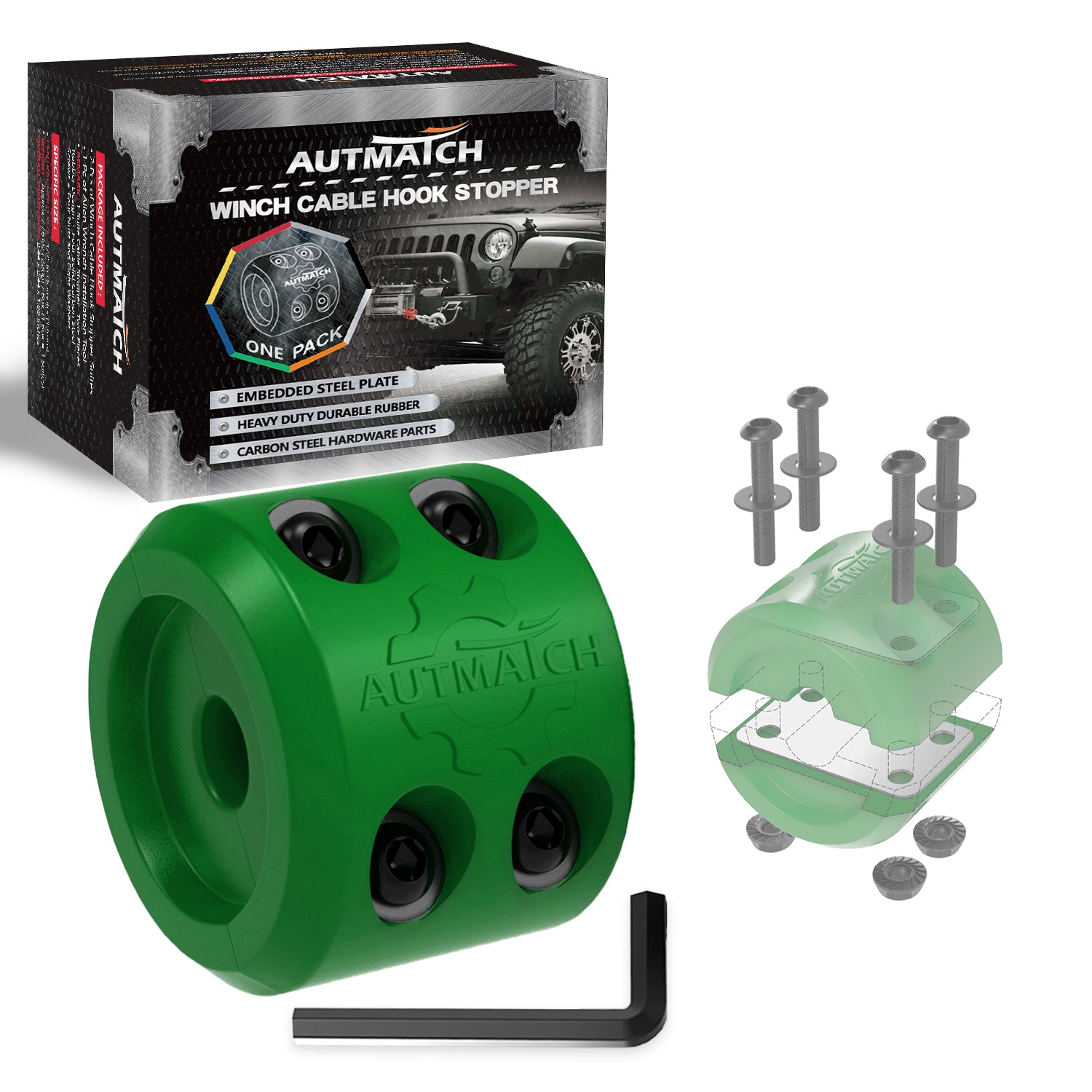 AUTMATCH Winch Cable Hook Stopper (1 Pack) Silicone Rubber Shock Absorbent Winch Stopper Dark Green