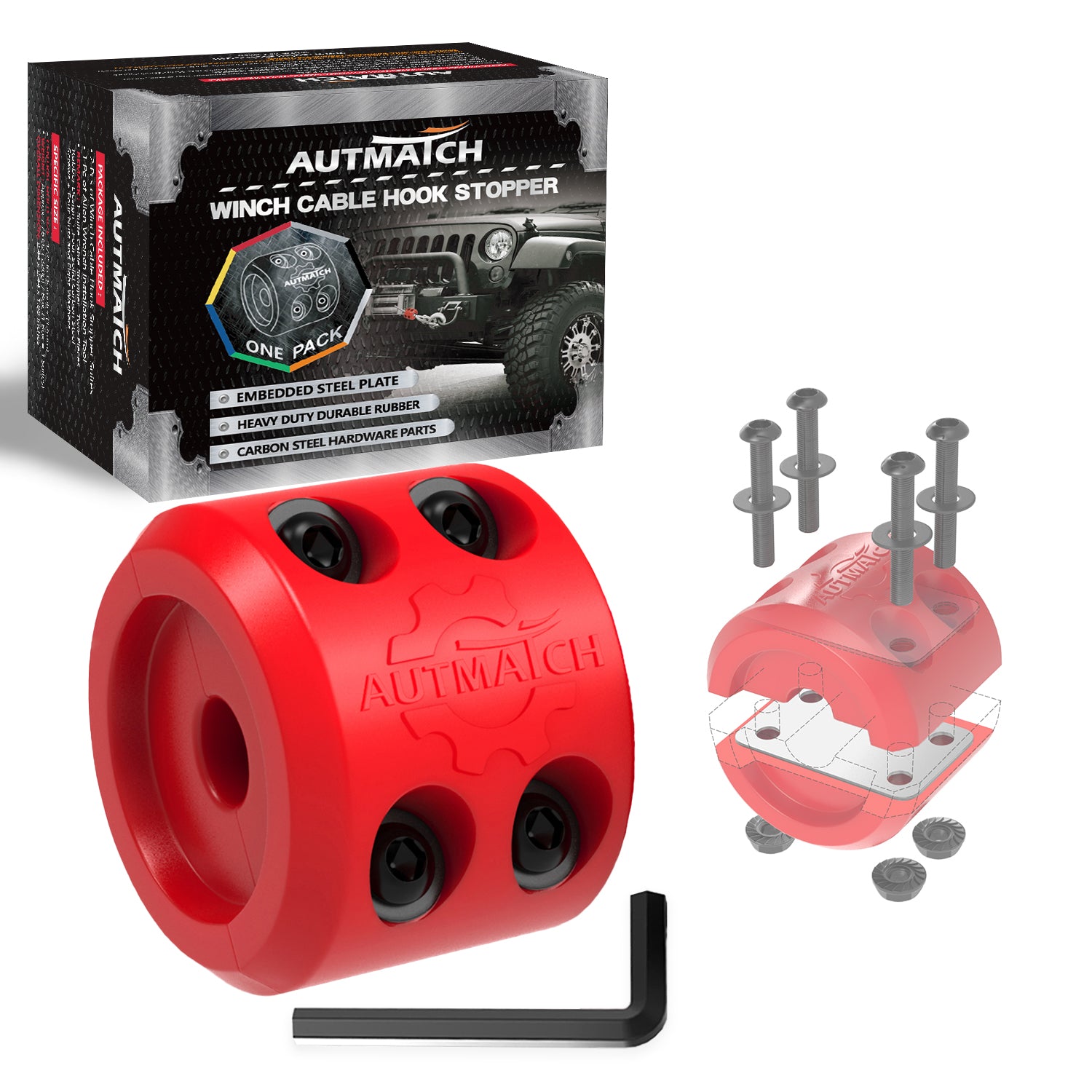 AUTMATCH Winch Cable Hook Stopper (1 Pack) Silicone Rubber Shock Absorbent Winch Stopper Red