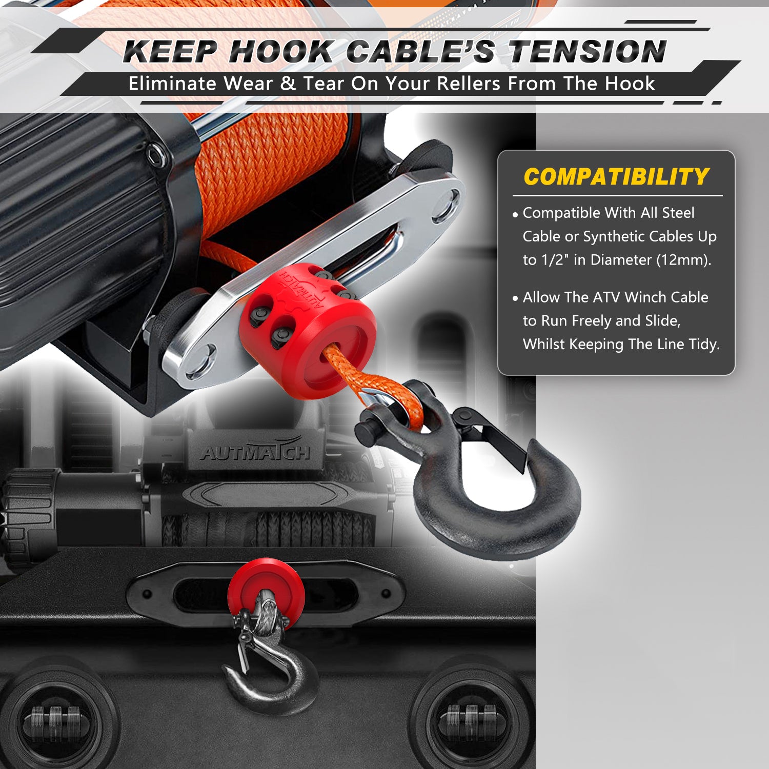 • Compatibility: Compatible With All Steel Cable or Synthetic Cables Up to 1/2" in Diameter (12mm). Allow The ATV Winch Cable to Run Freely and Slide, Whilst Keeping The Line Tidy. Protect Your Winching Gear Like Never Before. For Trucks, ATV, UTV, ORV, Trailers, and Sport-Utility Vehicles Etc