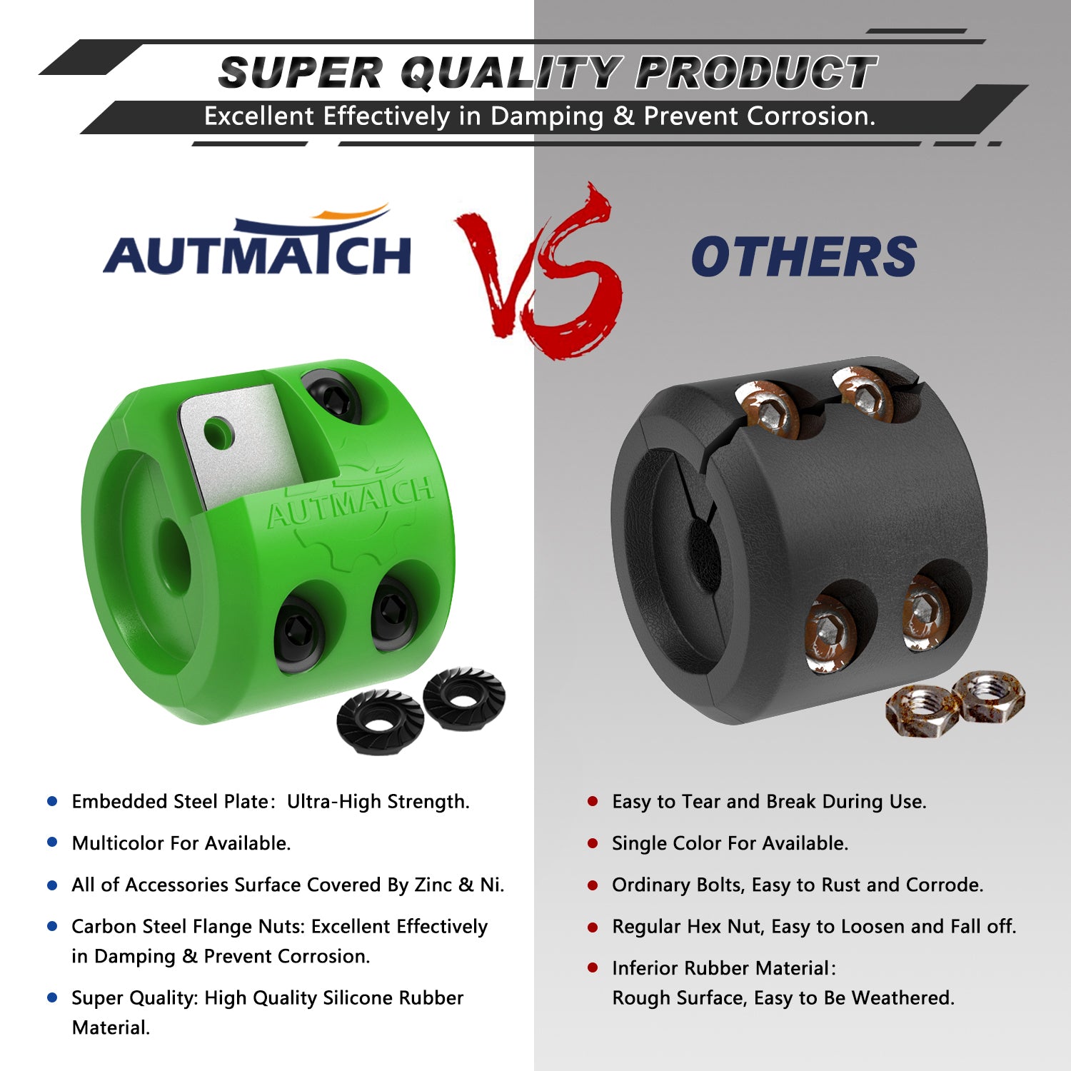 - Fitted Suite: Two-Pieces Silicone Rubber Design with Four Solid Carbon Steel Bolts, Four Locking Nuts and Four Washers Add a Portable Allen Wrench Tool, Split Design for Easy Installation. All of These Accessories Surface Covered By Zinc & Ni