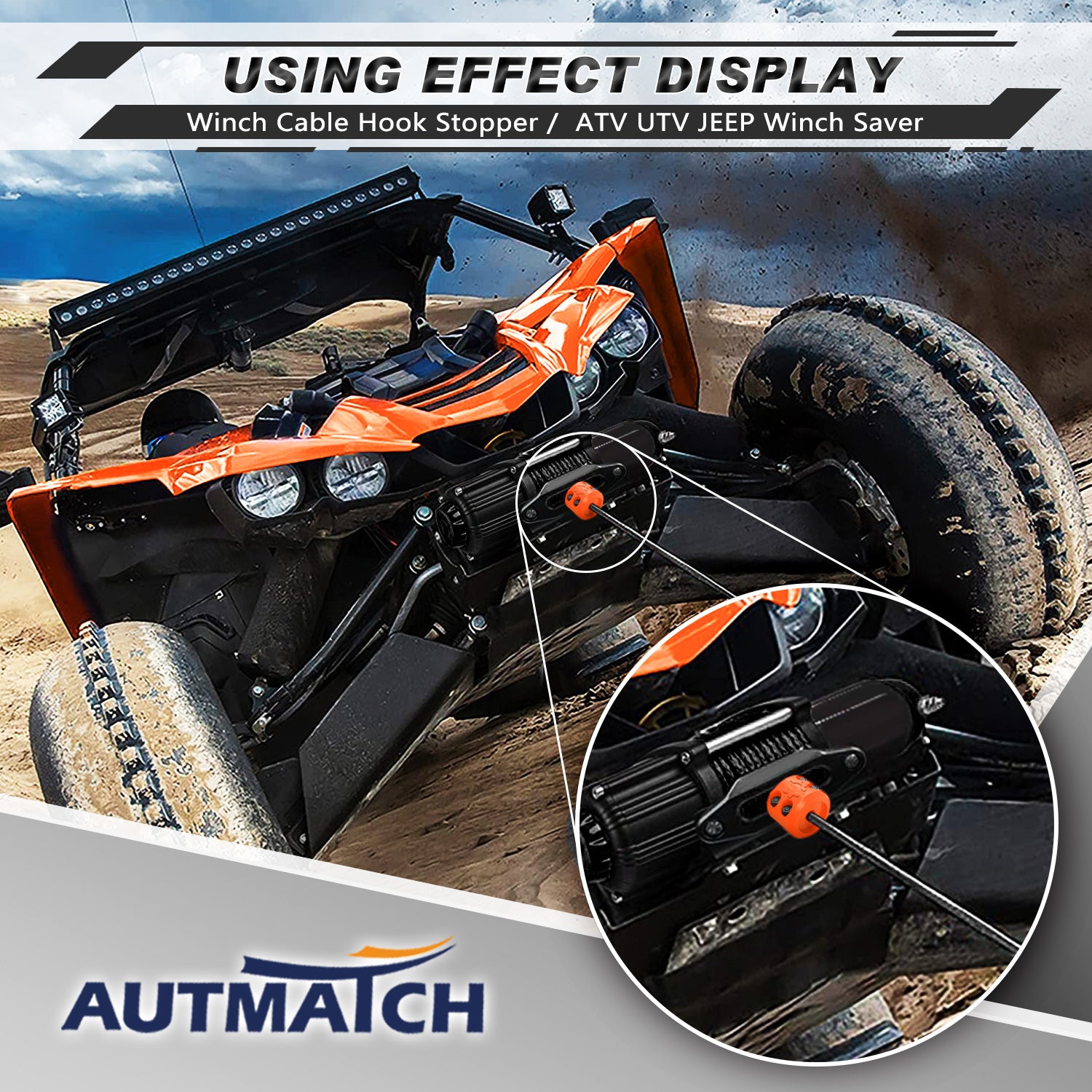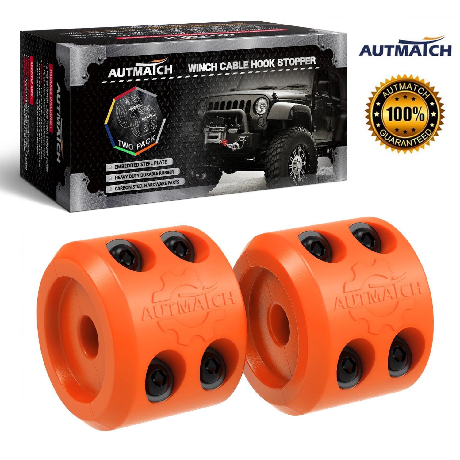 AUTMATCH Winch Cable Hook Stopper (2 Pack) Silicone Rubber Shock Absorbent Winch Stopper Orange