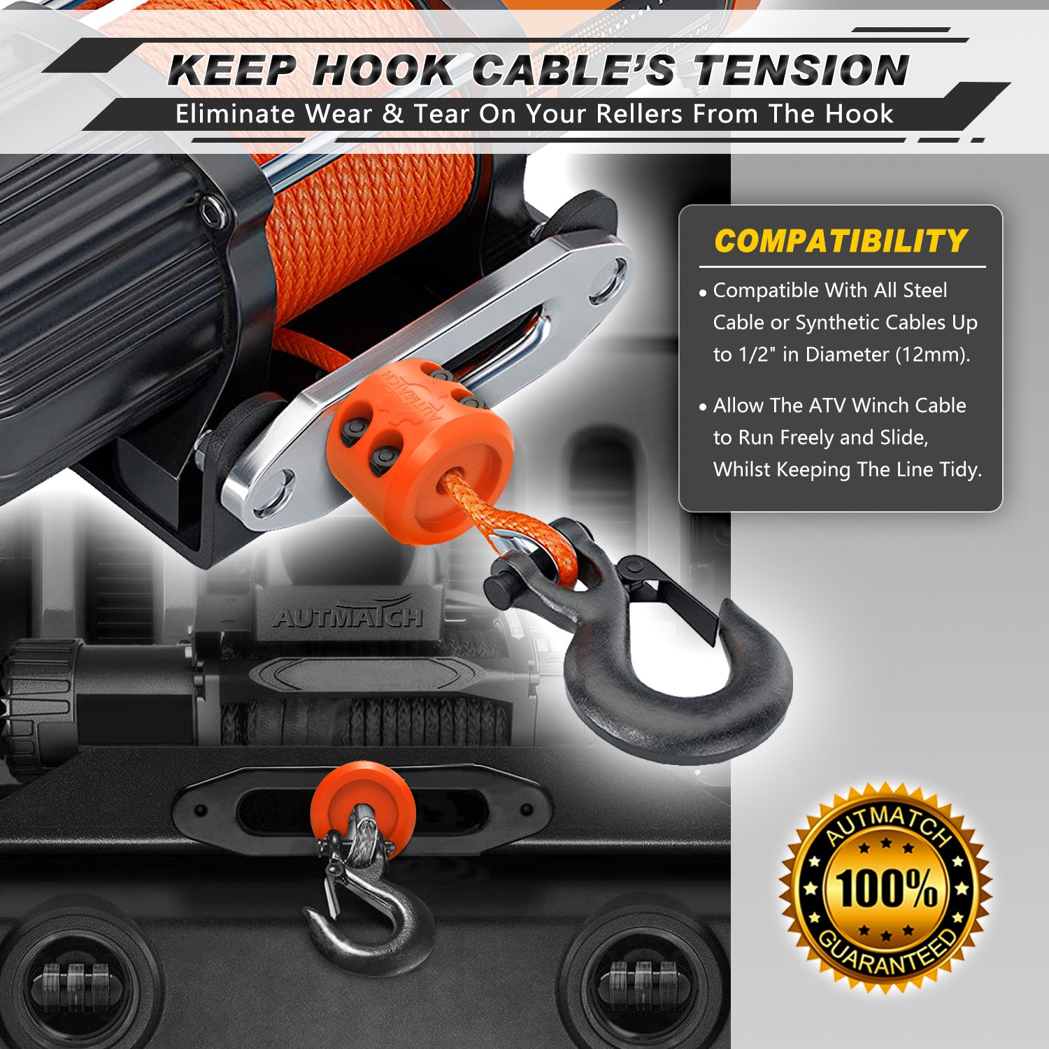 • Compatibility: Compatible With All Steel Cable or Synthetic Cables Up to 1/2" in Diameter (12mm). Allow The ATV Winch Cable to Run Freely and Slide, Whilst Keeping The Line Tidy. Protect Your Winching Gear Like Never Before. For Trucks, Jeeps, ATV, UTV, ORV, Trailers, and Sport-Utility Vehicles Etc