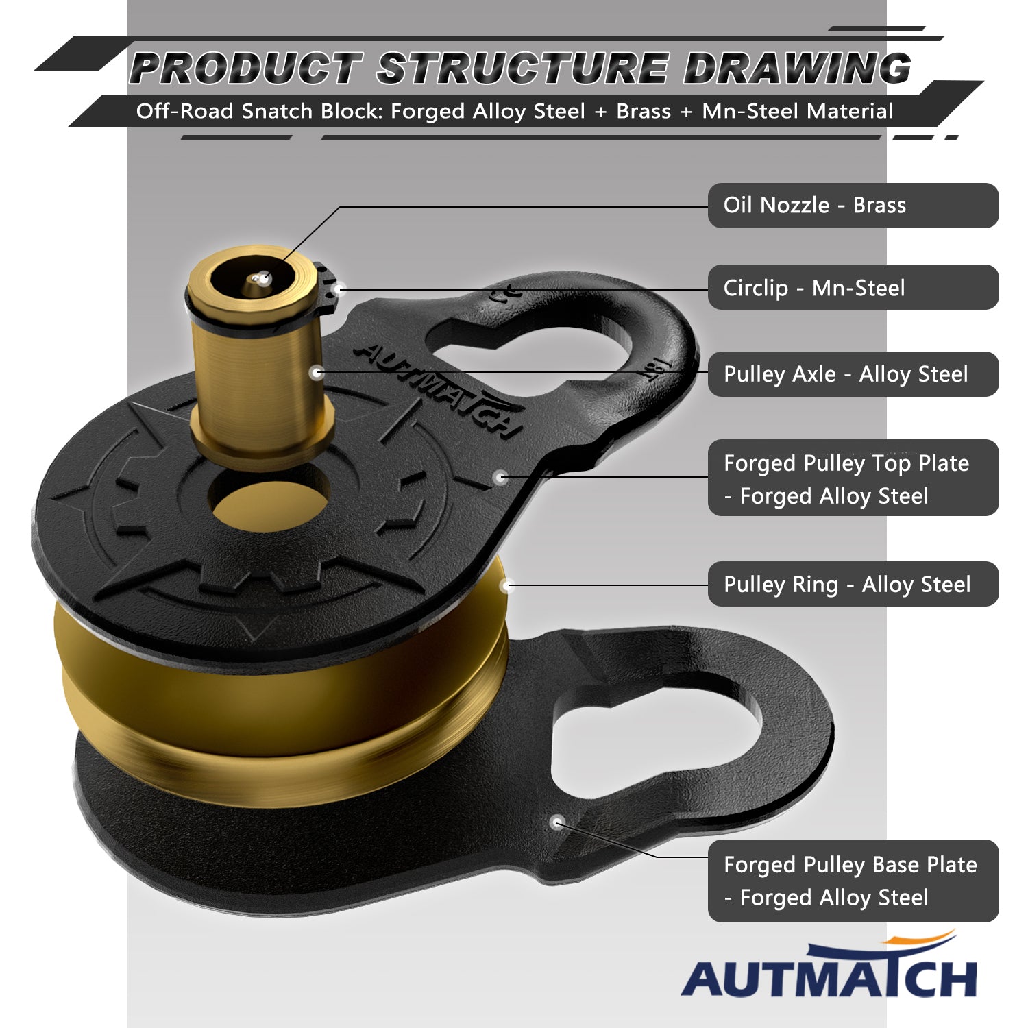 - Super Quality: Winch Snatch Block Pulley was Made of Ultra-Strong Drop Forged Steel with Heat Treated and Pulley Ring & Axle Made of Alloy Steel and Brass, It was Towing Capacity Up To 18T (39,683Lbs) and Max 36T (79,366Lbs) Break Strength, To Keep It More Safety & Stability, Off-Road Recovery Essential