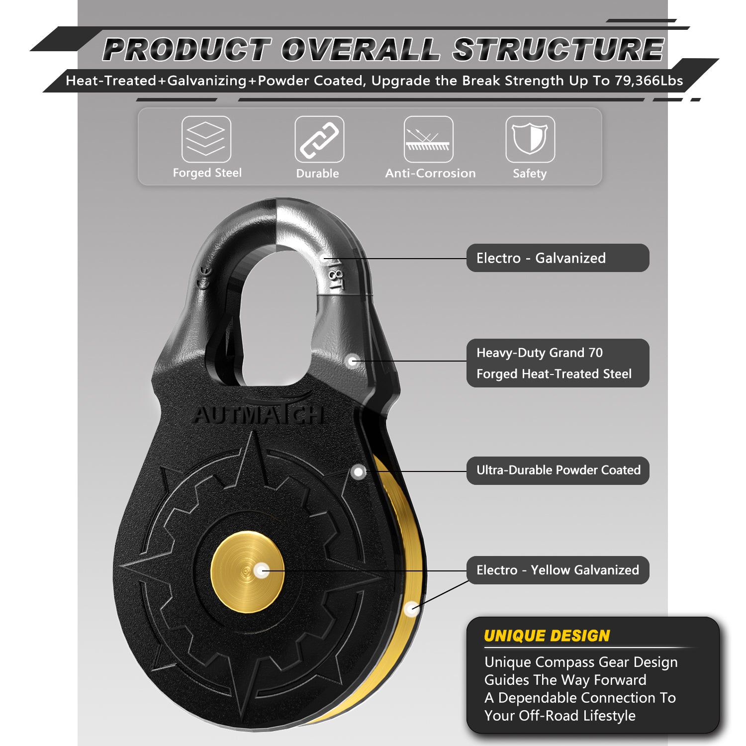 - Multiple Protection: Our Snatch Block Pulley For Prevent Rust and Corrosion By Galvanized & Powder Coated and The Built-In Copper Grease Nipple Ensures Hassle-Free Optimal Performance, Withstands Harsh Weather Conditions and Extended Service Life