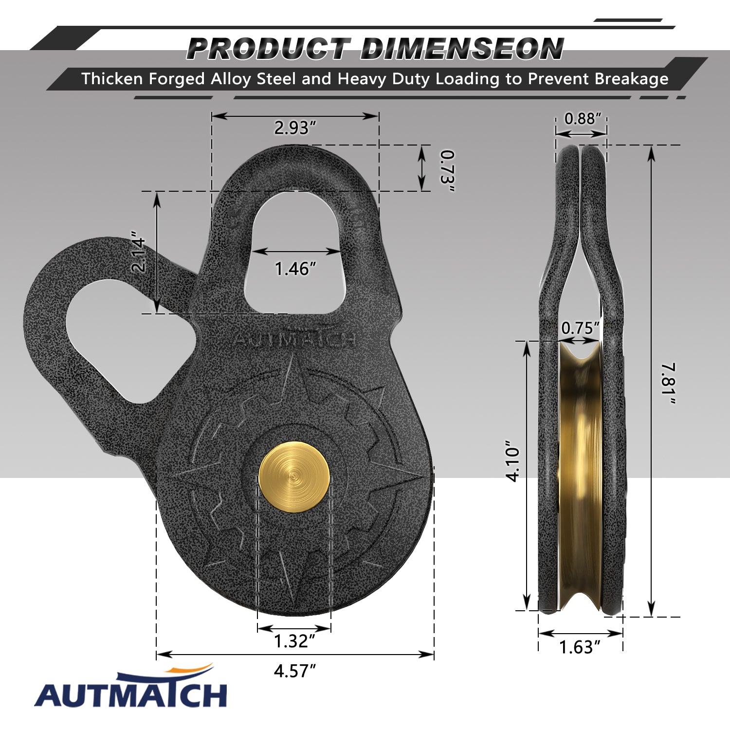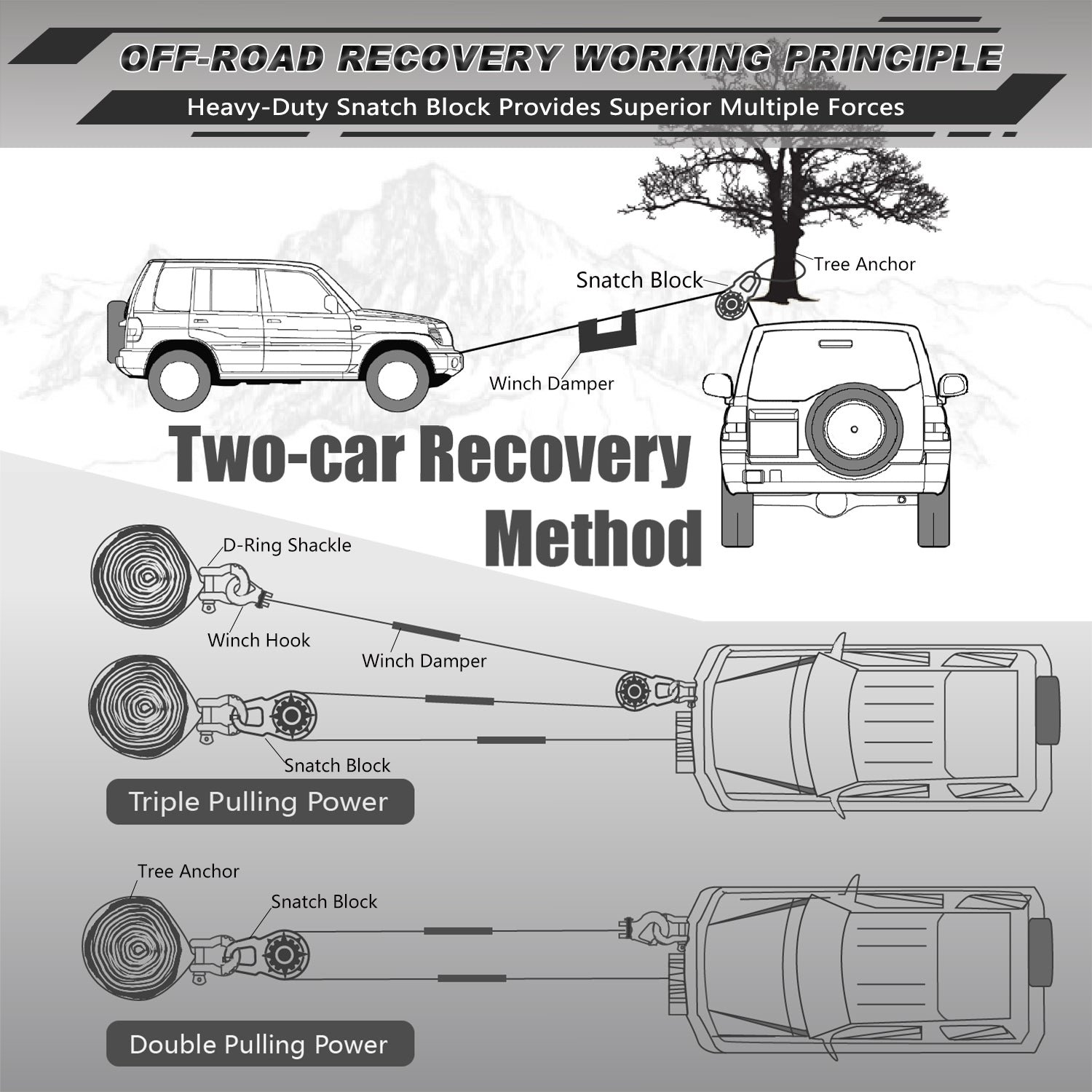 - Universal Fit: The Forged Snatch Block Works with 7/32" - 5/8” (15mm)Steel Cable or Synthetic Winch Rope, By Setting Up A Movable Pulley Block System, Increase The Winch Pulling Force, Improve The Performance of The Winch, and Change The Direction of Recovery In Complex Situations Where There Is No Straight Fixed Point